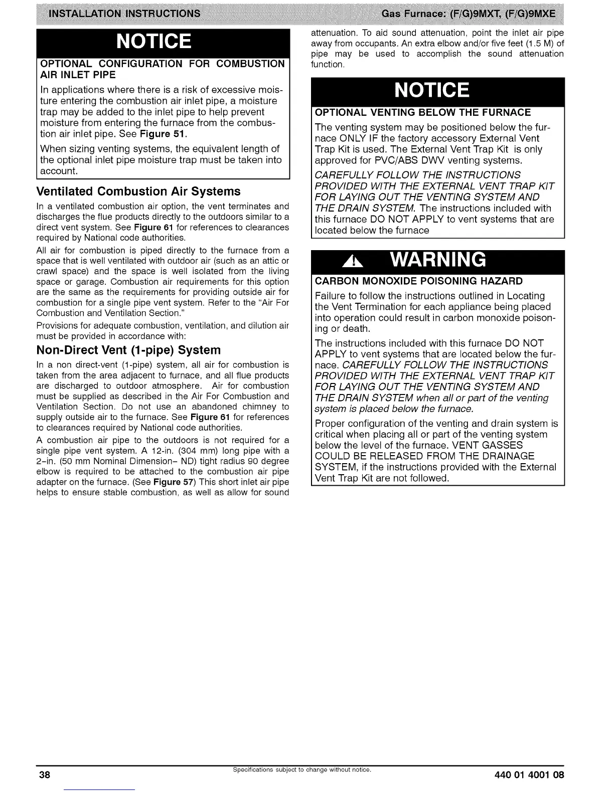 38 Specifications subject to change without notice. 440 01 4001 08