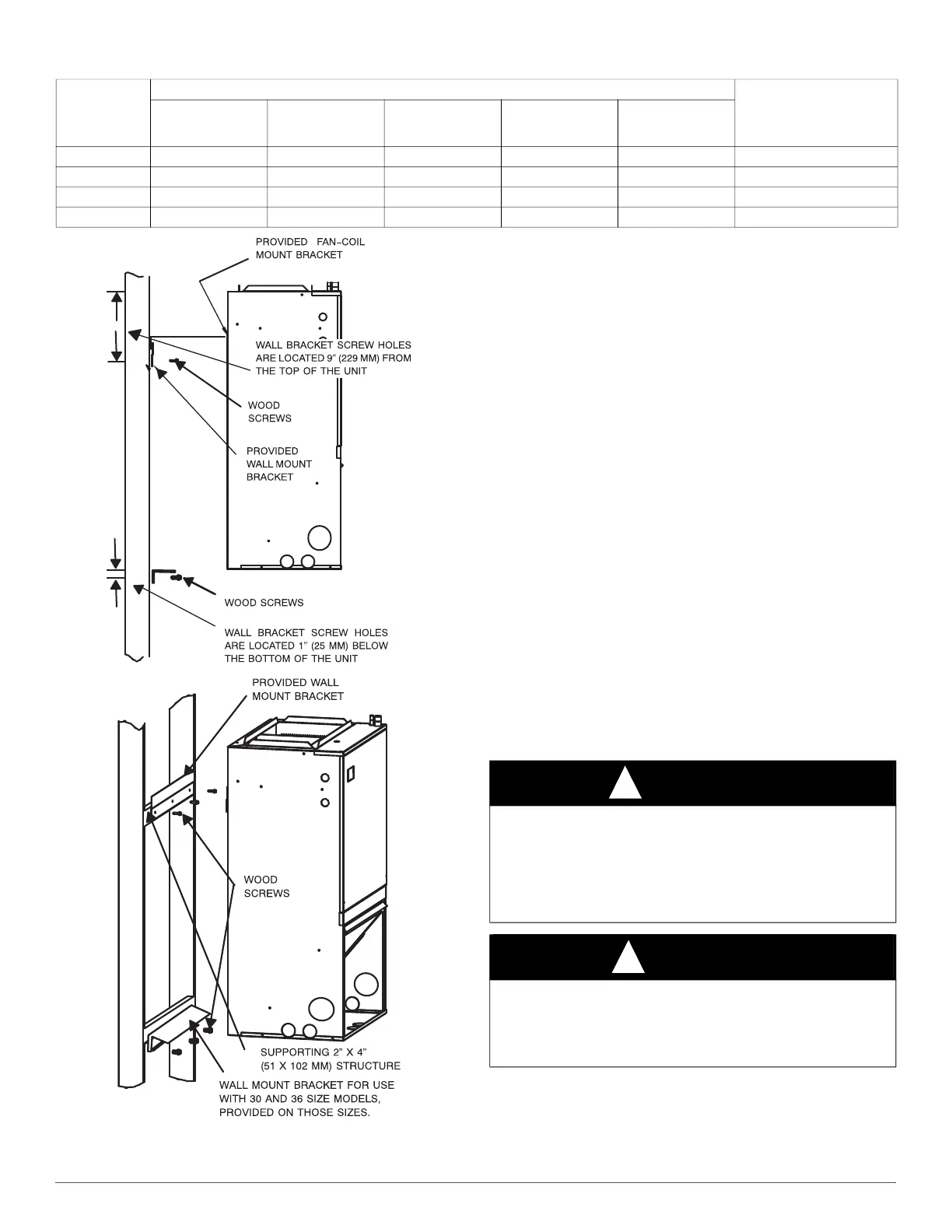 NOTE: Mounting wall and supporting structure must be able to support a minimum of