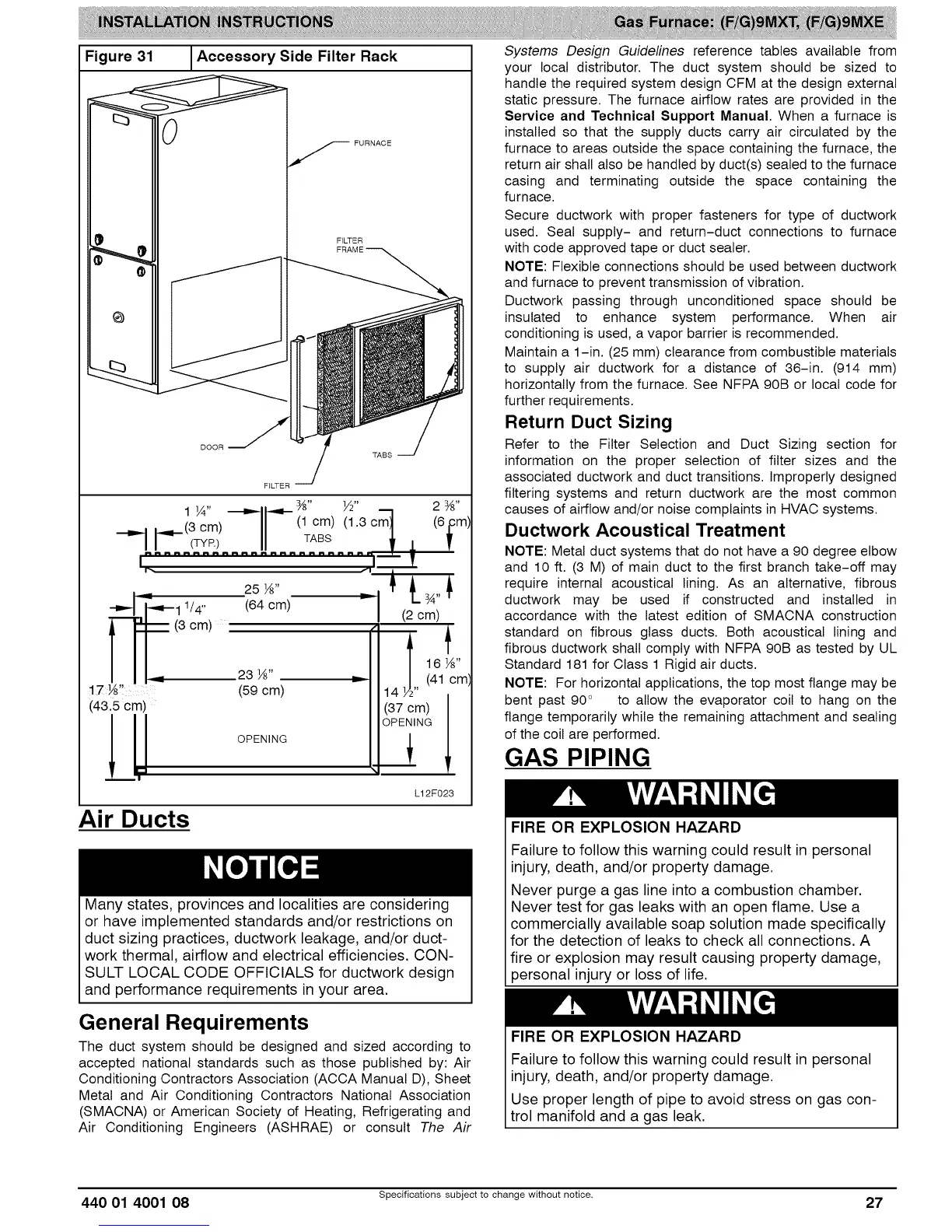 and 10 ft. (3 M) of main duct to the first branch take-off may
