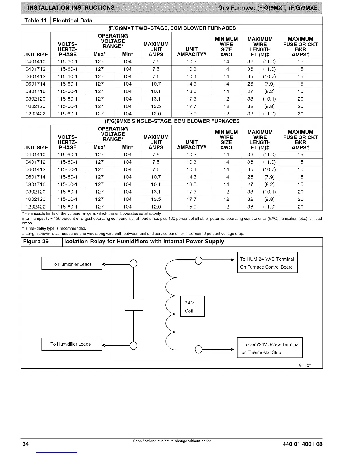 # Unit ampacity = 125percent of largestoperating component's full load amps plus 100 percent of allother potential operating components' (EAC, humidifier, etc.) full load