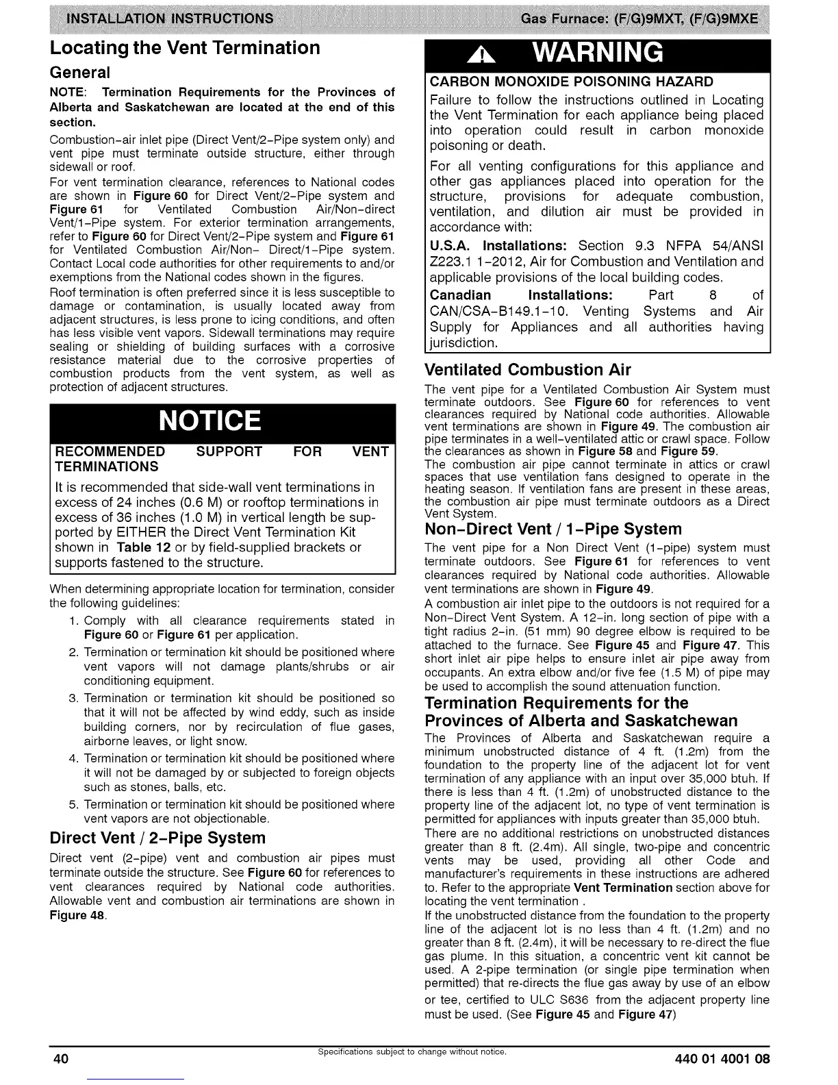 refer to Figure 60 for Direct Vent/2-Pipe system and Figure 61