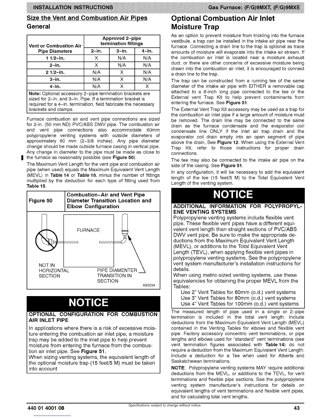 for 2-in. (50 mm ND) PVC/ABS DWV pipe. The combustion air