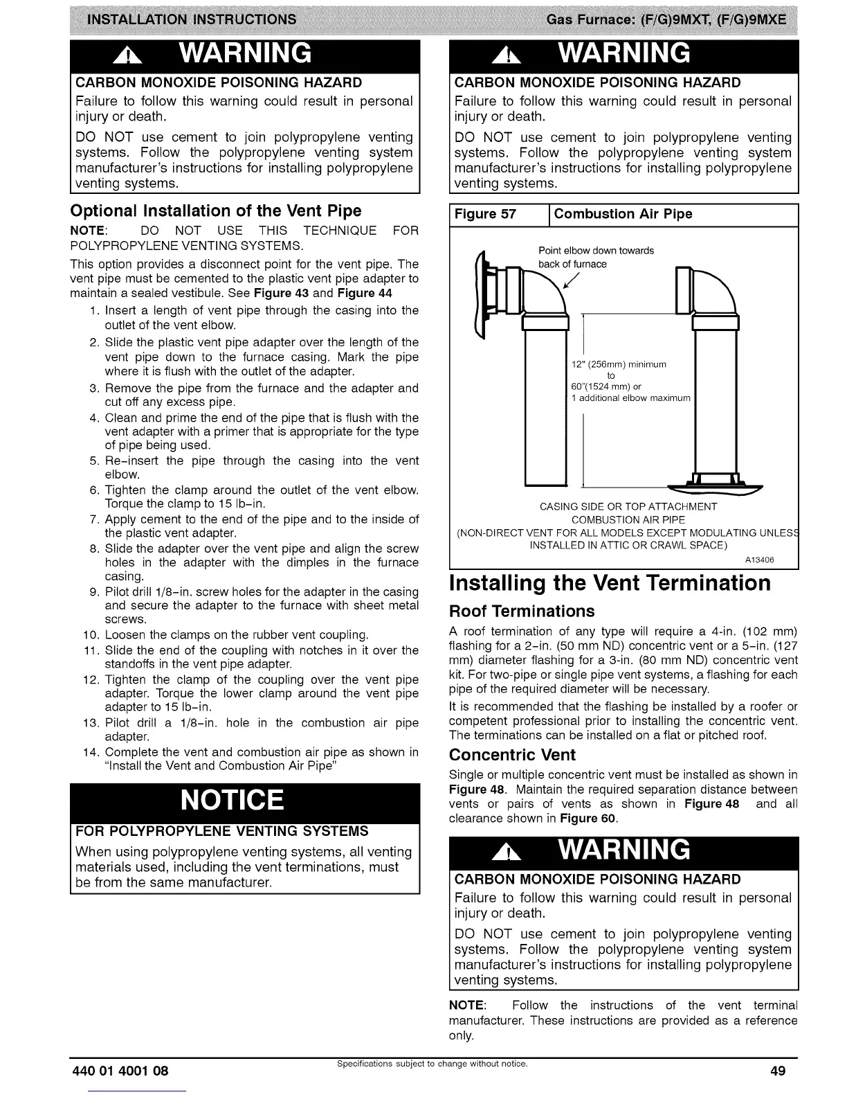 kit. For two-pipe or single pipe vent systems, a flashing for each