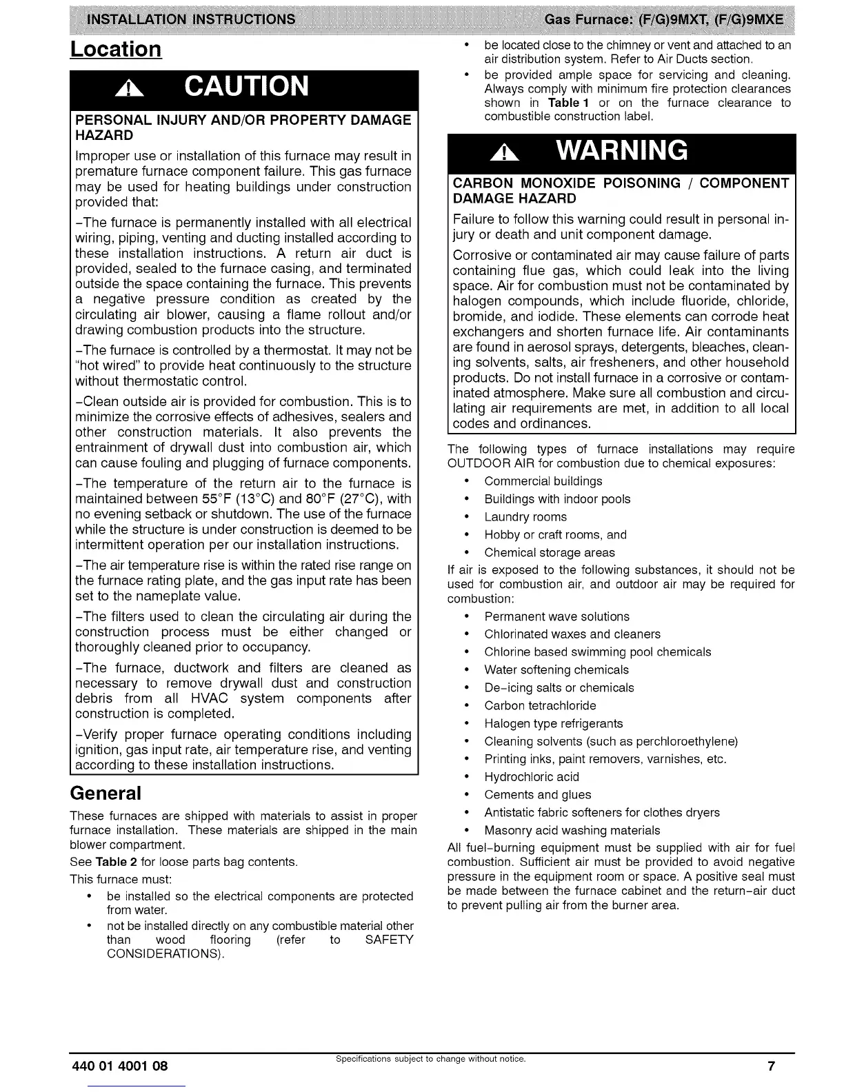 products. Do not install furnace in a corrosive or contam-