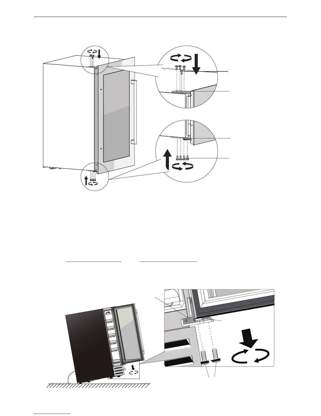 1.Open the door, and loosen the 2 screws from Pvot Hnge of the Bottom Rght Hnge.