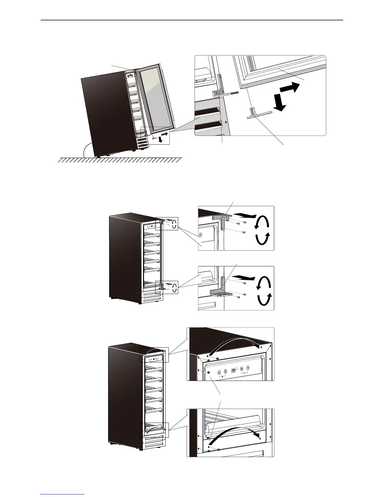 2.Carefully remove the door from the Upper Rght Hnge and prevent t from scratchng. Take out