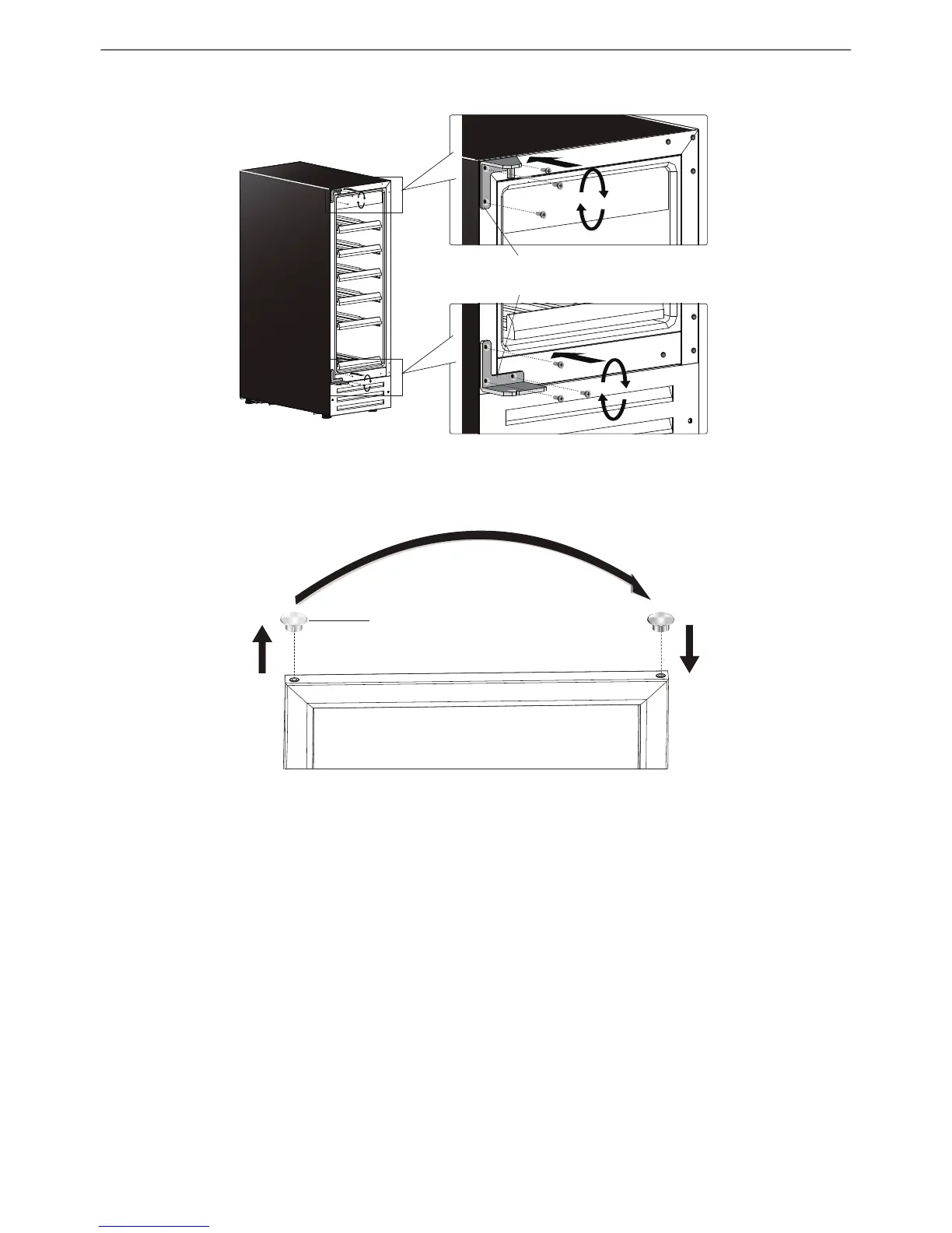 5.Install the Upper Left Hnge and Bottom Left Hnge to the left sde of the cabnet. Make sure