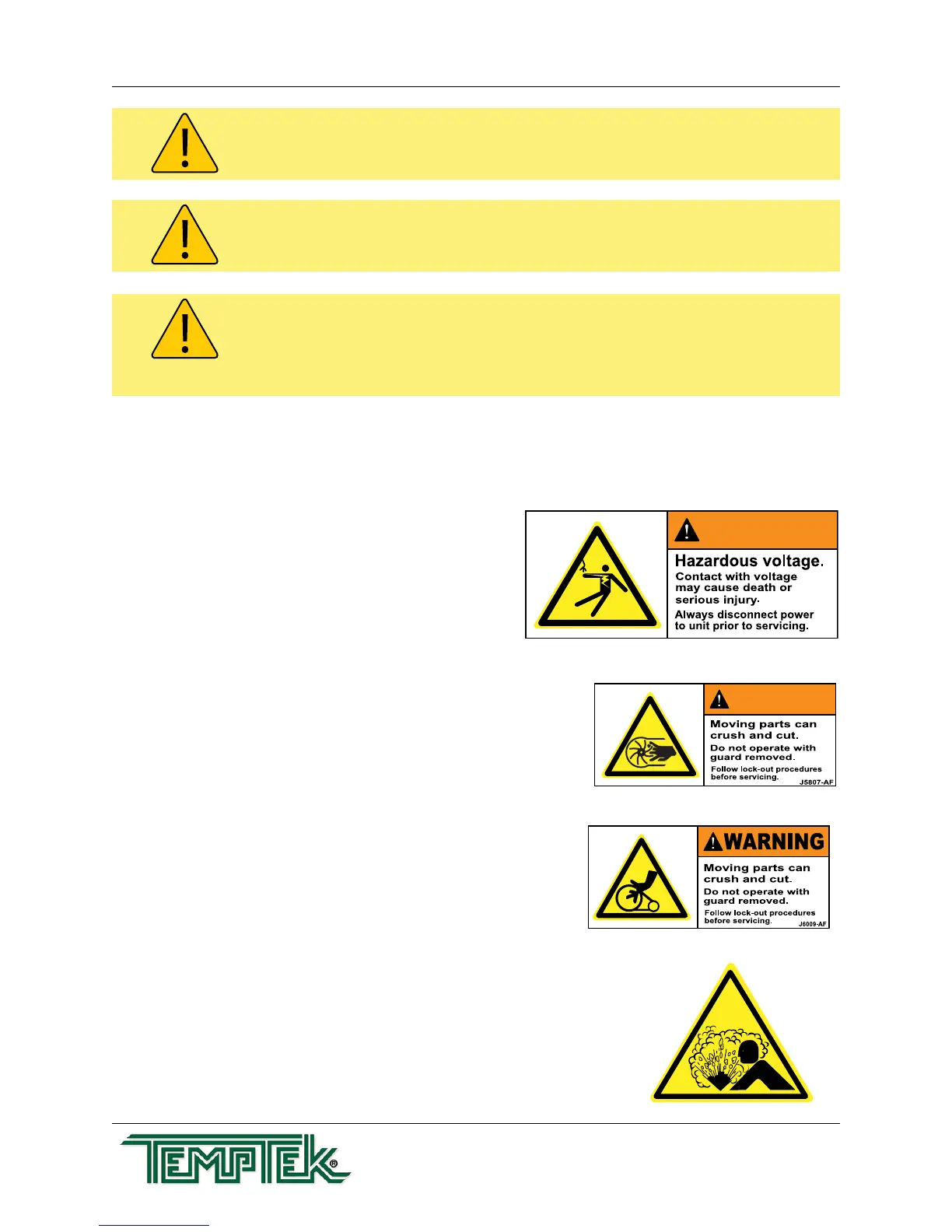 F. Samples of Warning Labels applied to typical chillers.