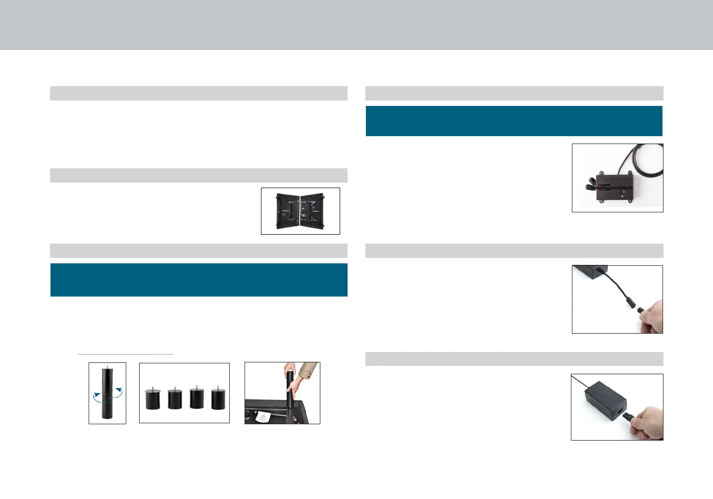 To install the legs, thread the leg into frame, and tighten by