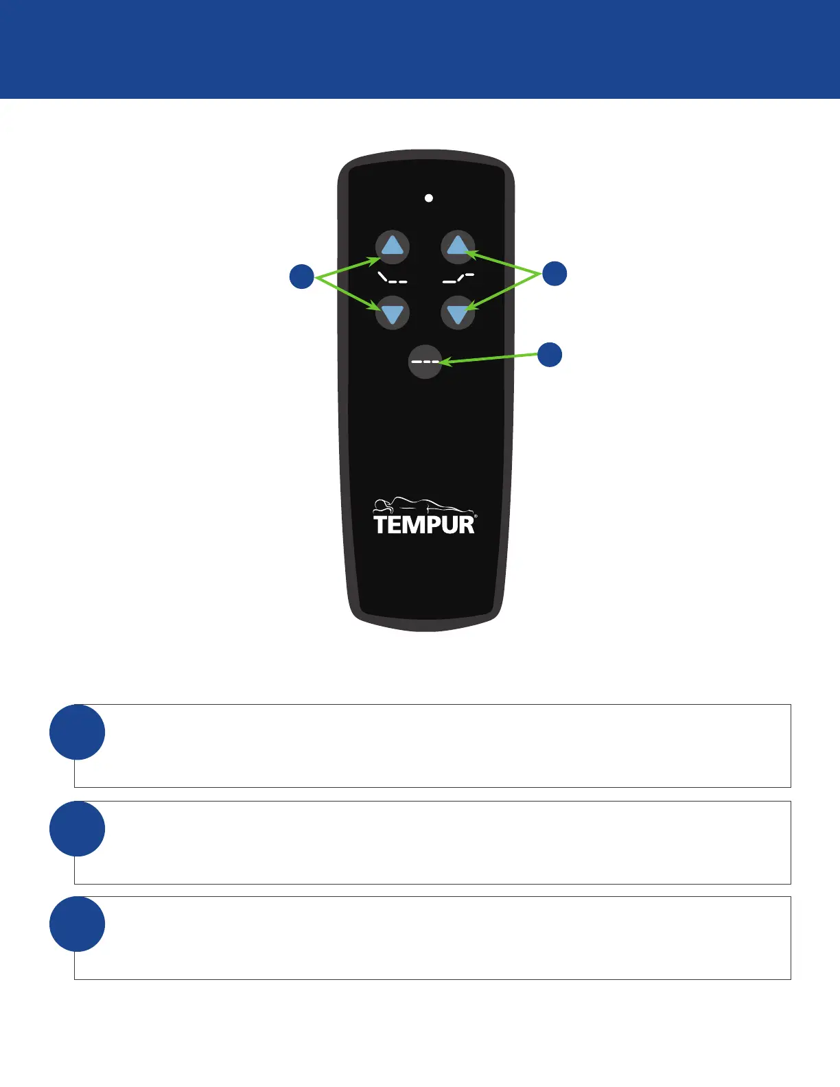TEMPUR Zero G Series - Aspire Remote Control; Head Lift;Lower Controls; Foot Lift;Lower Controls; Flat Preset Position