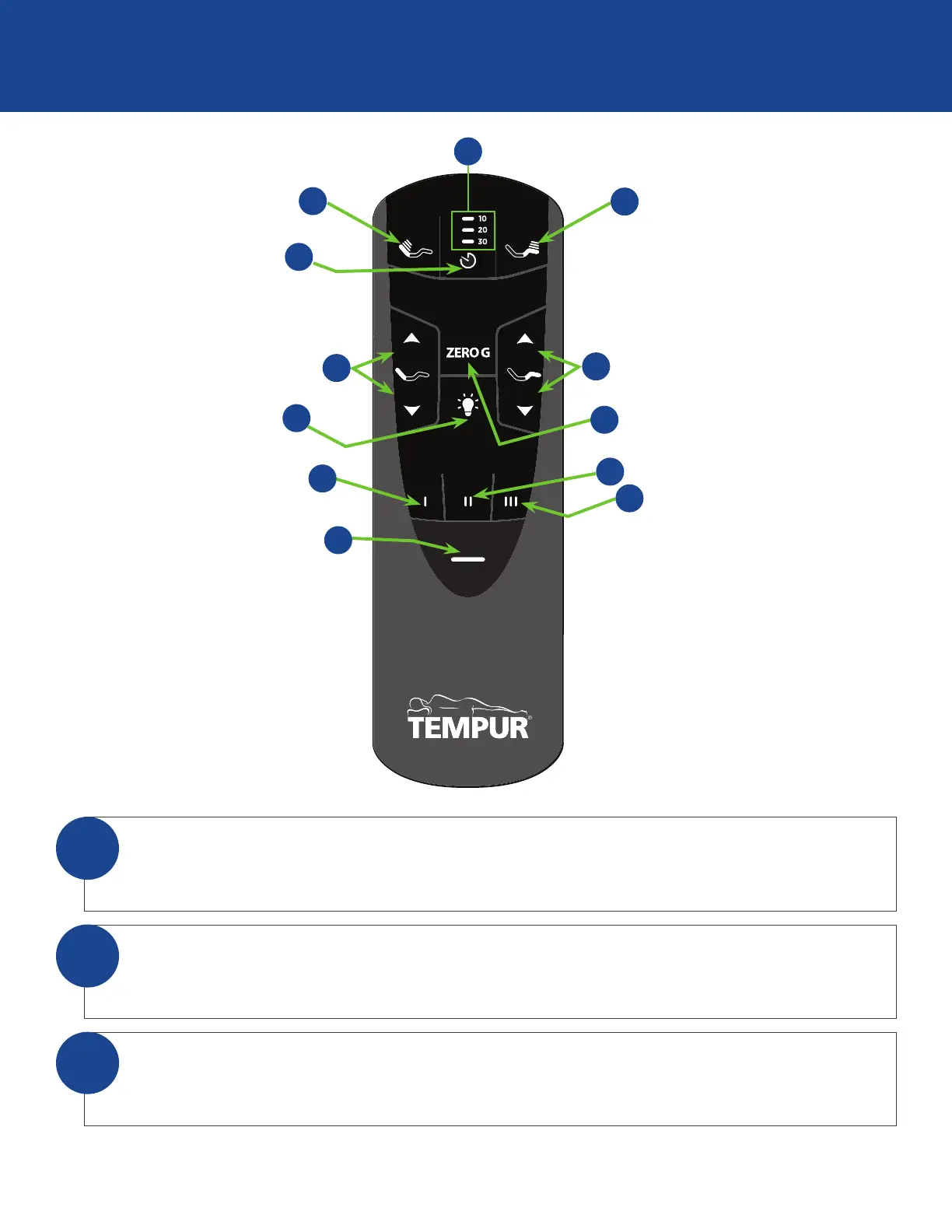 TEMPUR Zero G Series - Zero G Curve Remote Control; Massage Timer and Function Controls