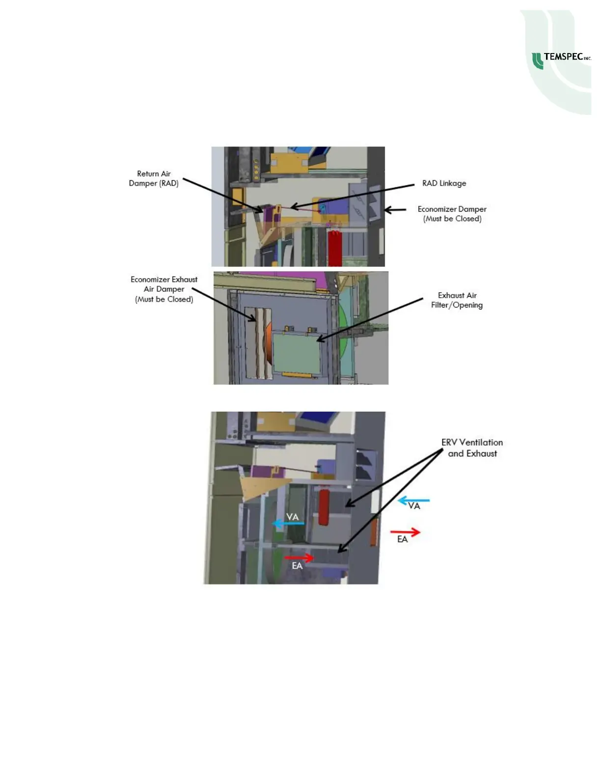 If the unit has an Economizer damper, ensure the Economizer damper along with the economizer exhaust