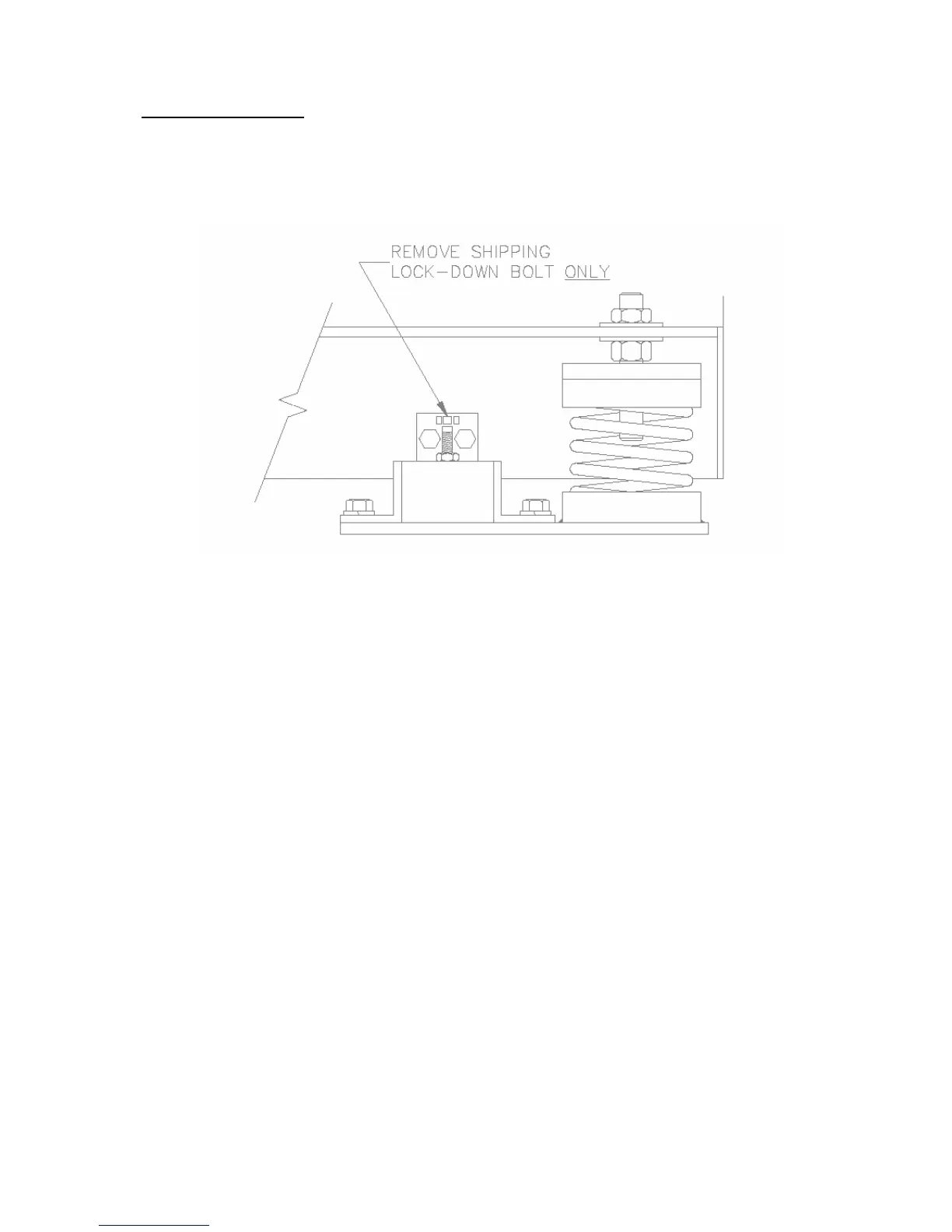 (1) After unit is permanently positioned, fan isolation shipping lock-down bolt, only (see drawing), should
