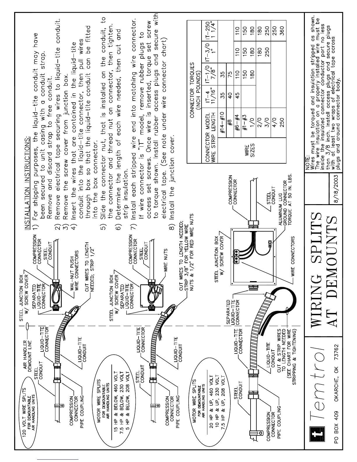 Temtrol SERIES ITF - Wiring Splits at Demounts
