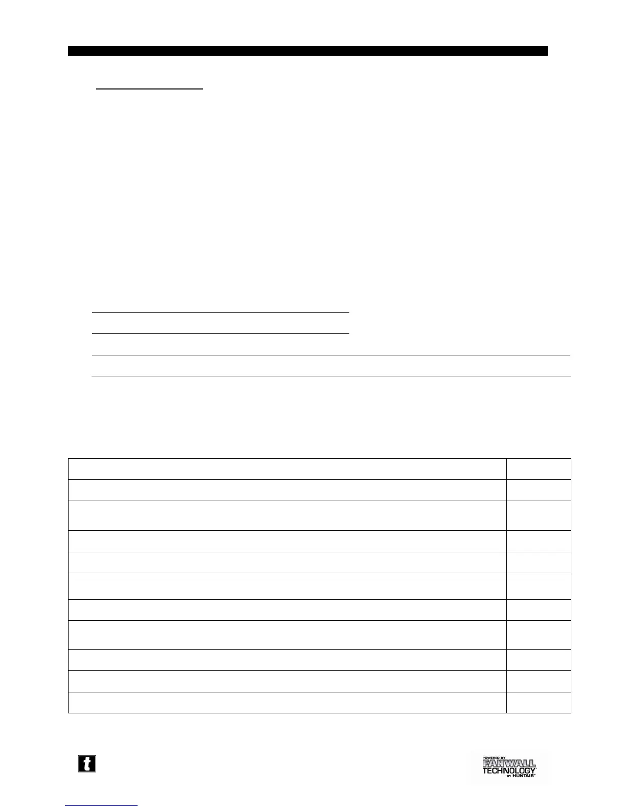 Temtrol recommends that the following FWT START~UP REPORT be performed on each unit and the results