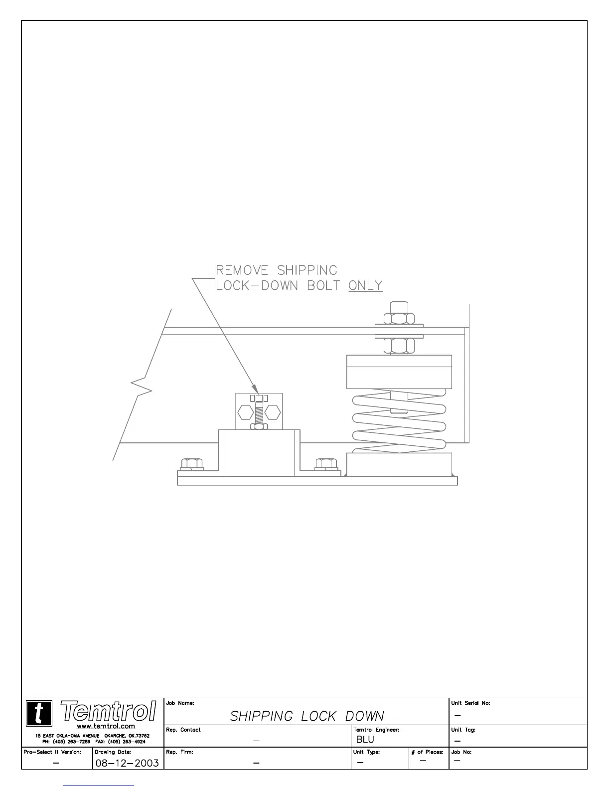 Temtrol SERIES ITF - Shipping Lock Down Procedure