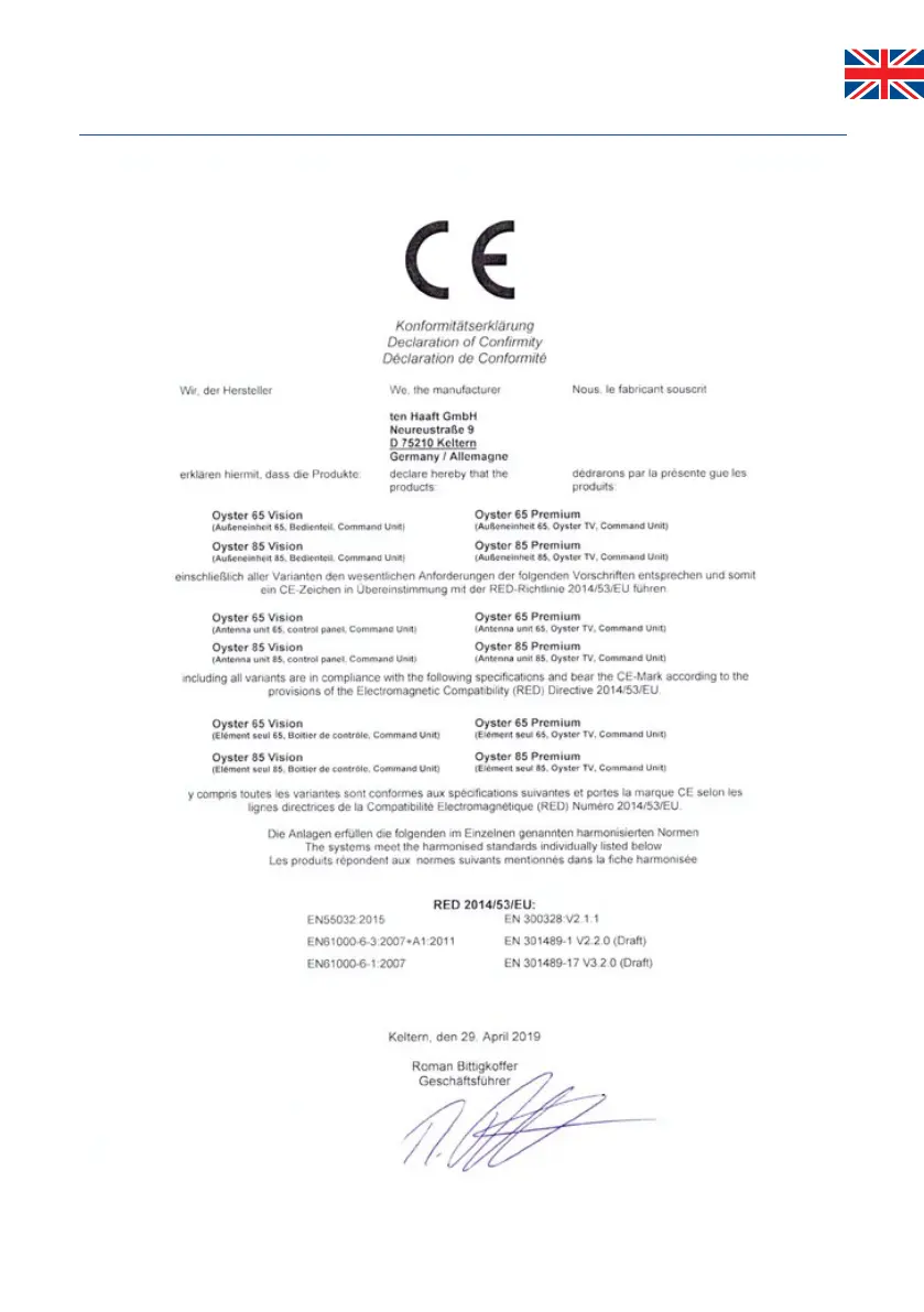 Ten-Haaft COMMAND UNIT - Declaration of Conformity