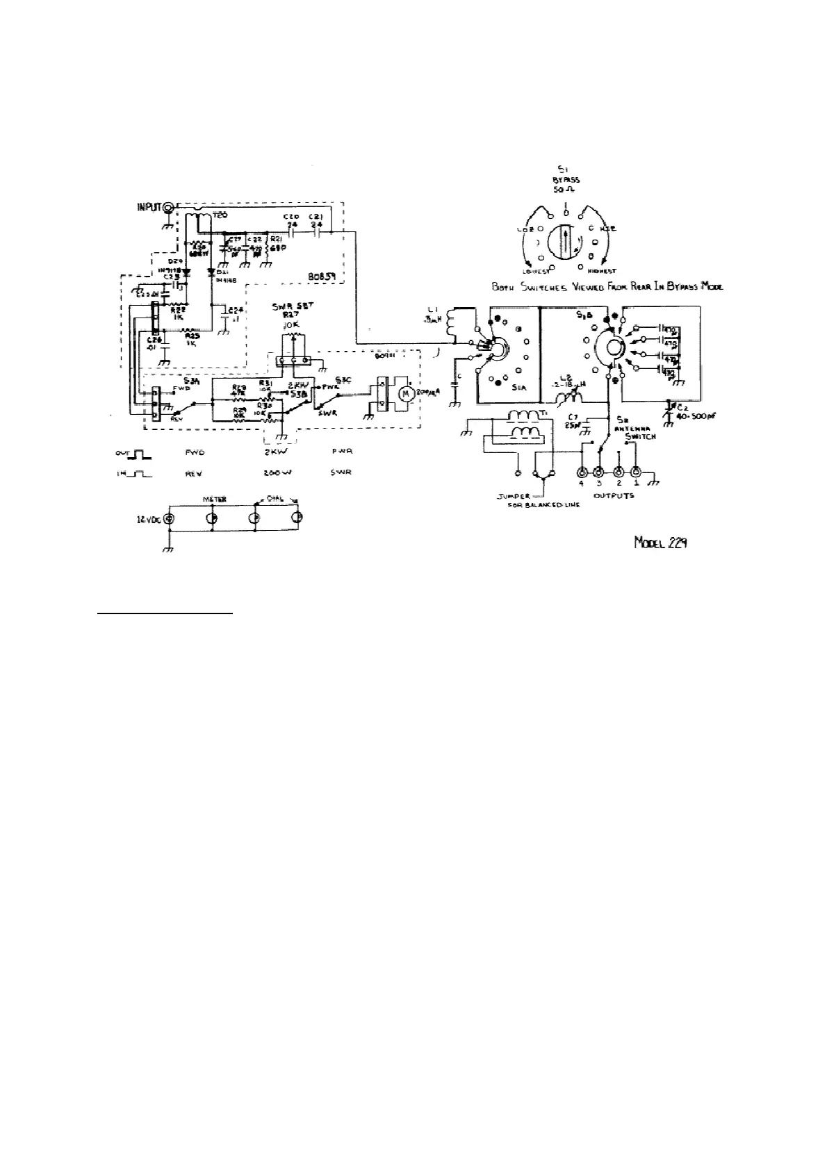 The matching circuit used in the model 229 is basically an "L" network. The "L" network has