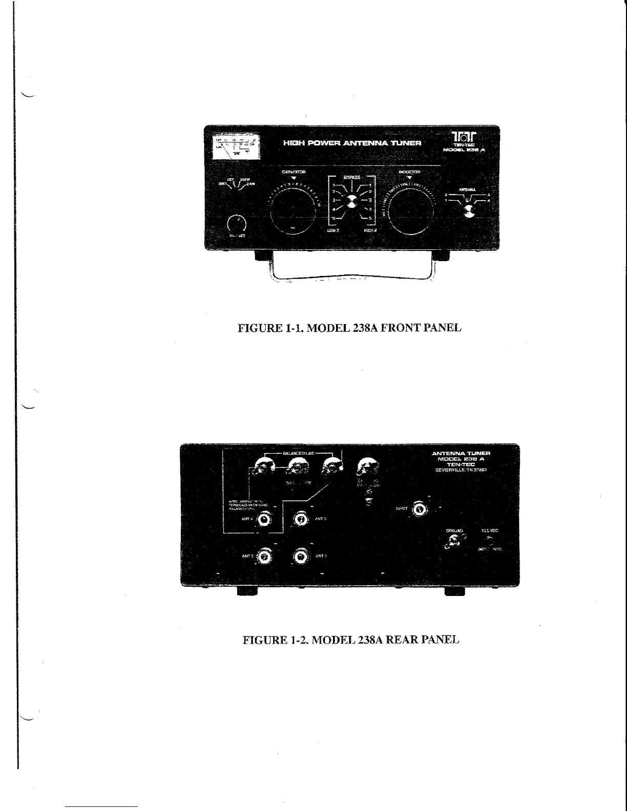 Ten-Tec 238A - Meter Lighting; Front Panel; Rear Panel