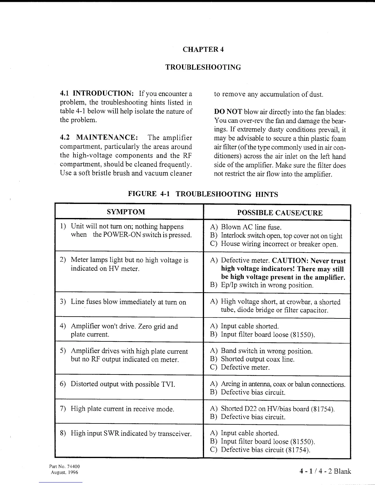 Ten-Tec Centaur 411 - Troubleshooting; Maintenance; Troubleshooting Hints