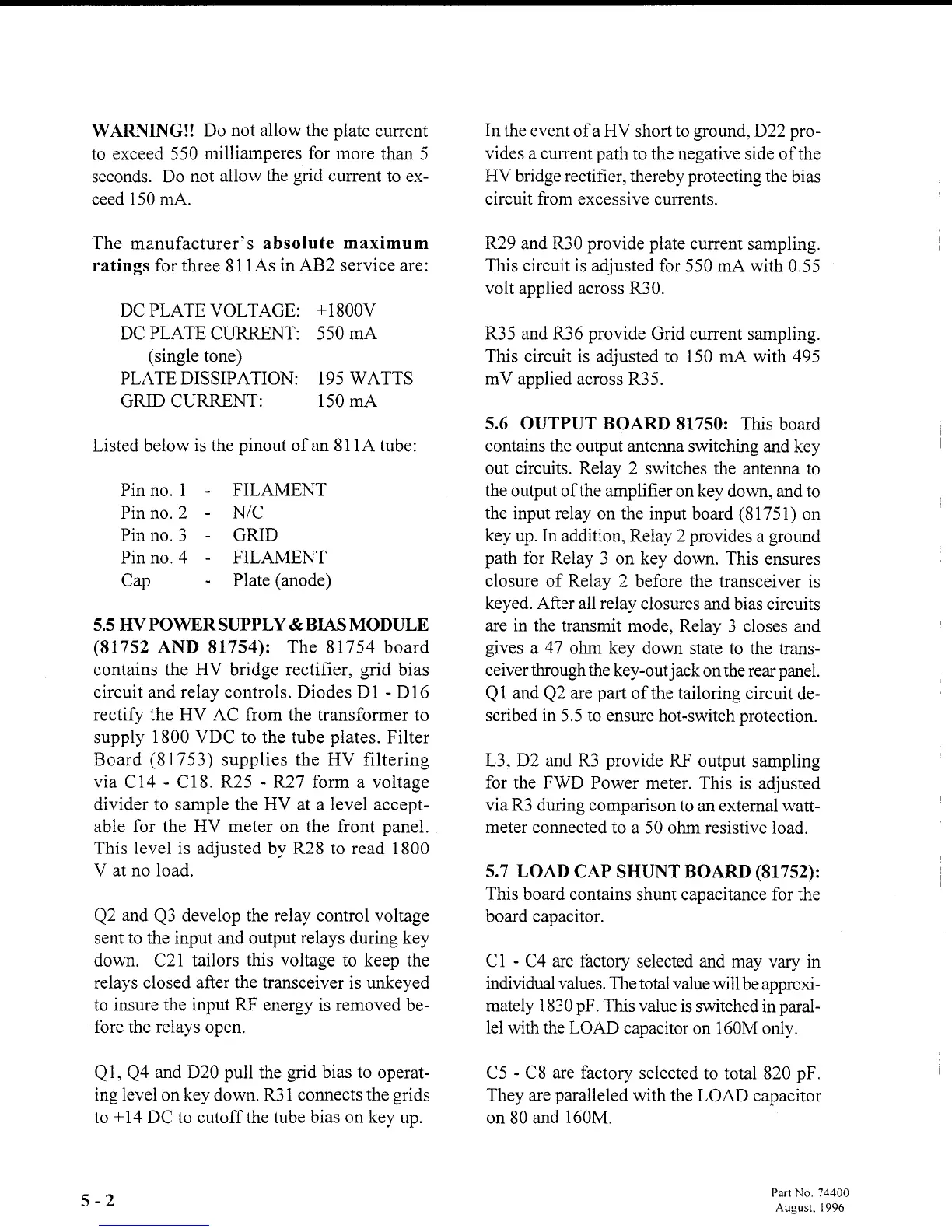 Ten-Tec Centaur 411 - HV Power Supply & Bias Module; Output Board 81750; Load Cap Shunt Board