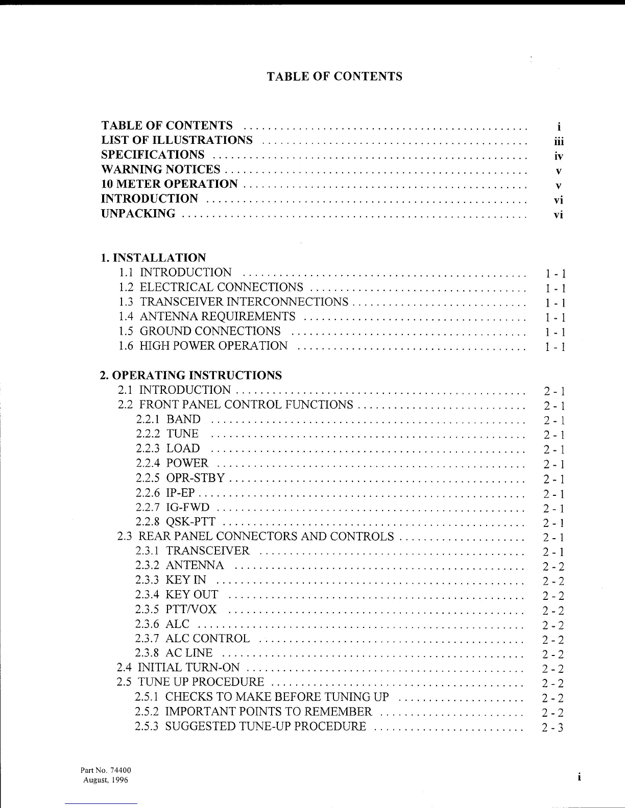 Ten-Tec Centaur 411 - Table of Contents