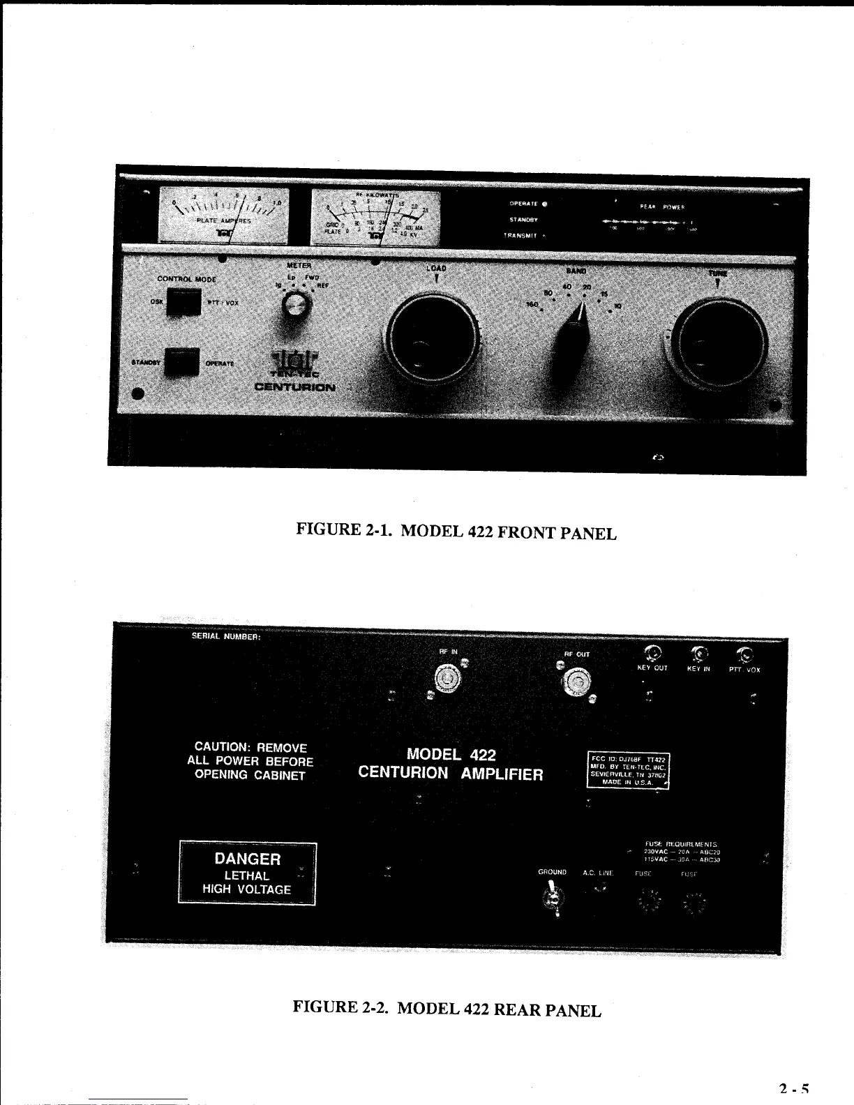 Ten-Tec Centurion 422 - Model 422 Front Panel; Model 422 Rear Panel