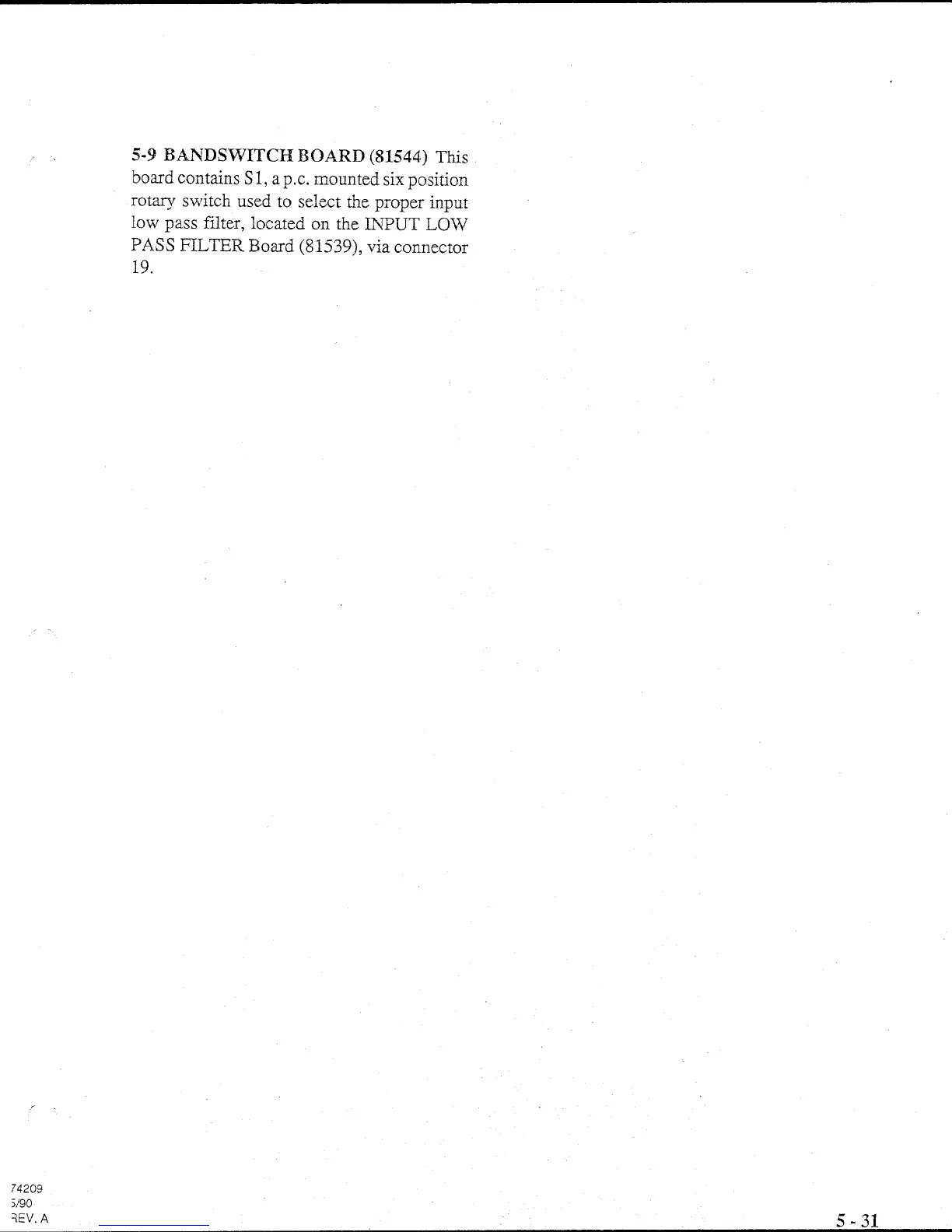 Ten-Tec Centurion 422 - Bandswitch Board