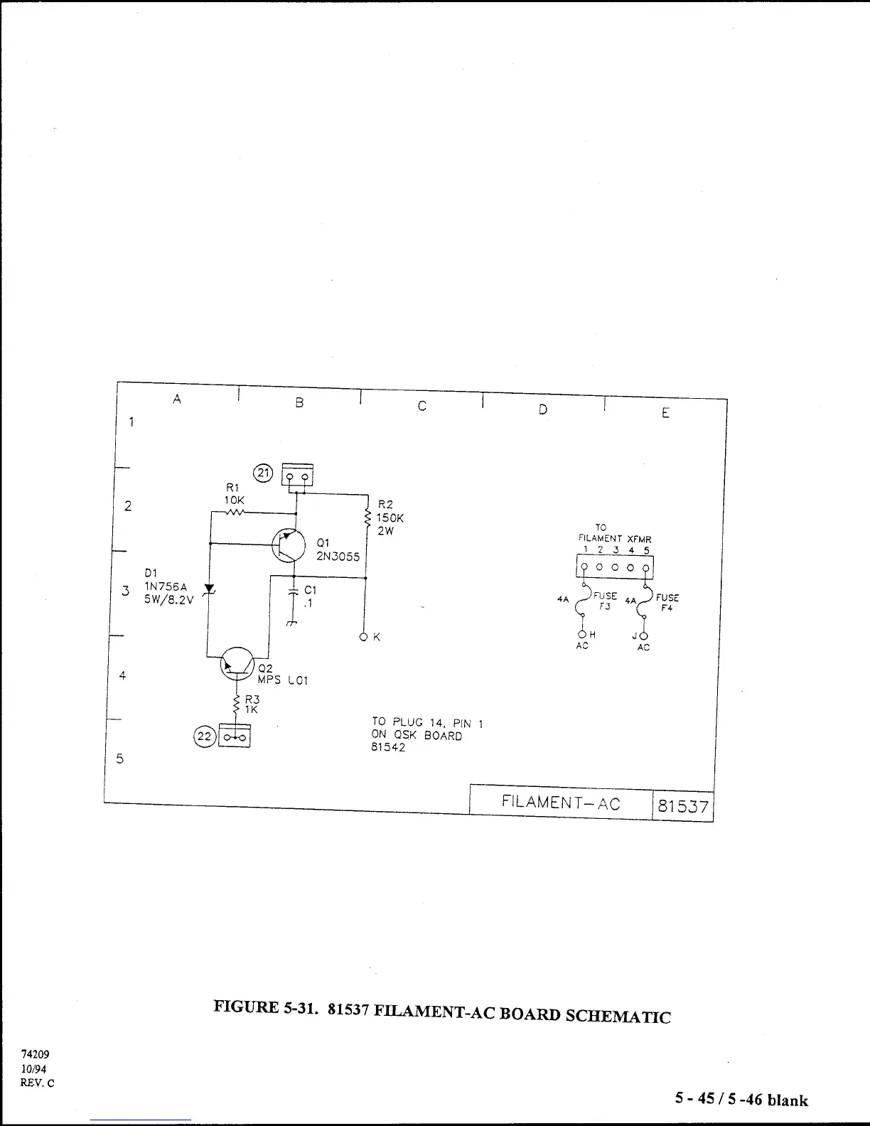 Ten-Tec Centurion 422 - 81537 Filament - AC Board Schematic