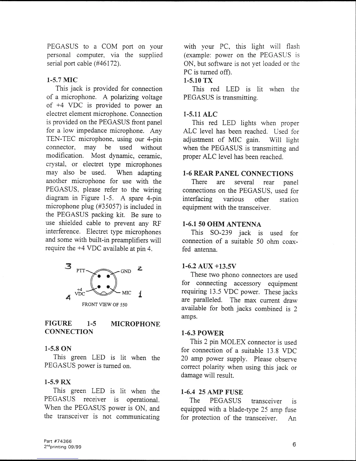 Ten-Tec Pegasus 550 - 1-5.7 Microphone Jack; 1-6 Rear Panel Connections; 3-6.4 SSB Settings