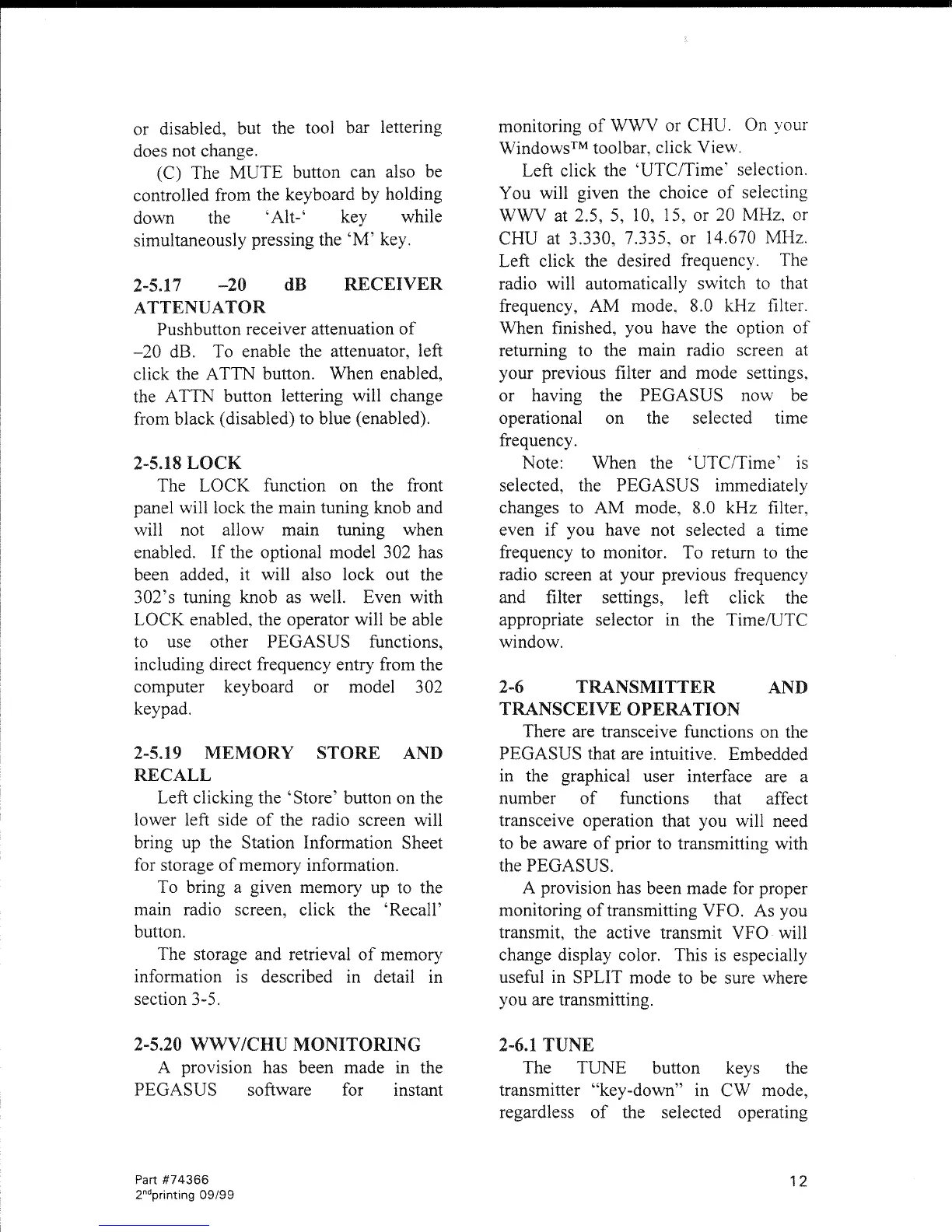 Ten-Tec Pegasus 550 - 2-5.19 Memory Store and Recall; 2-6 Transmitter & Transceive Operation