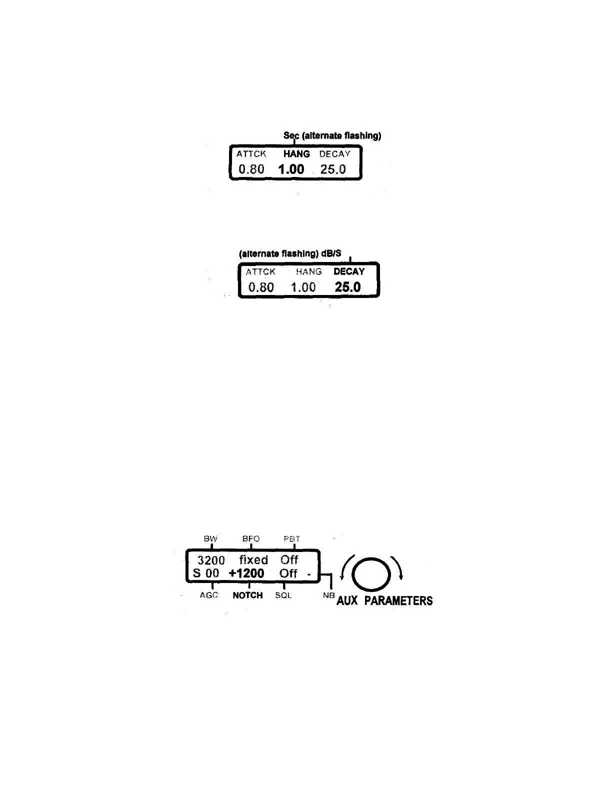 3. Set Decay Time: To advance to Decay Time, press the AGC button again. The third