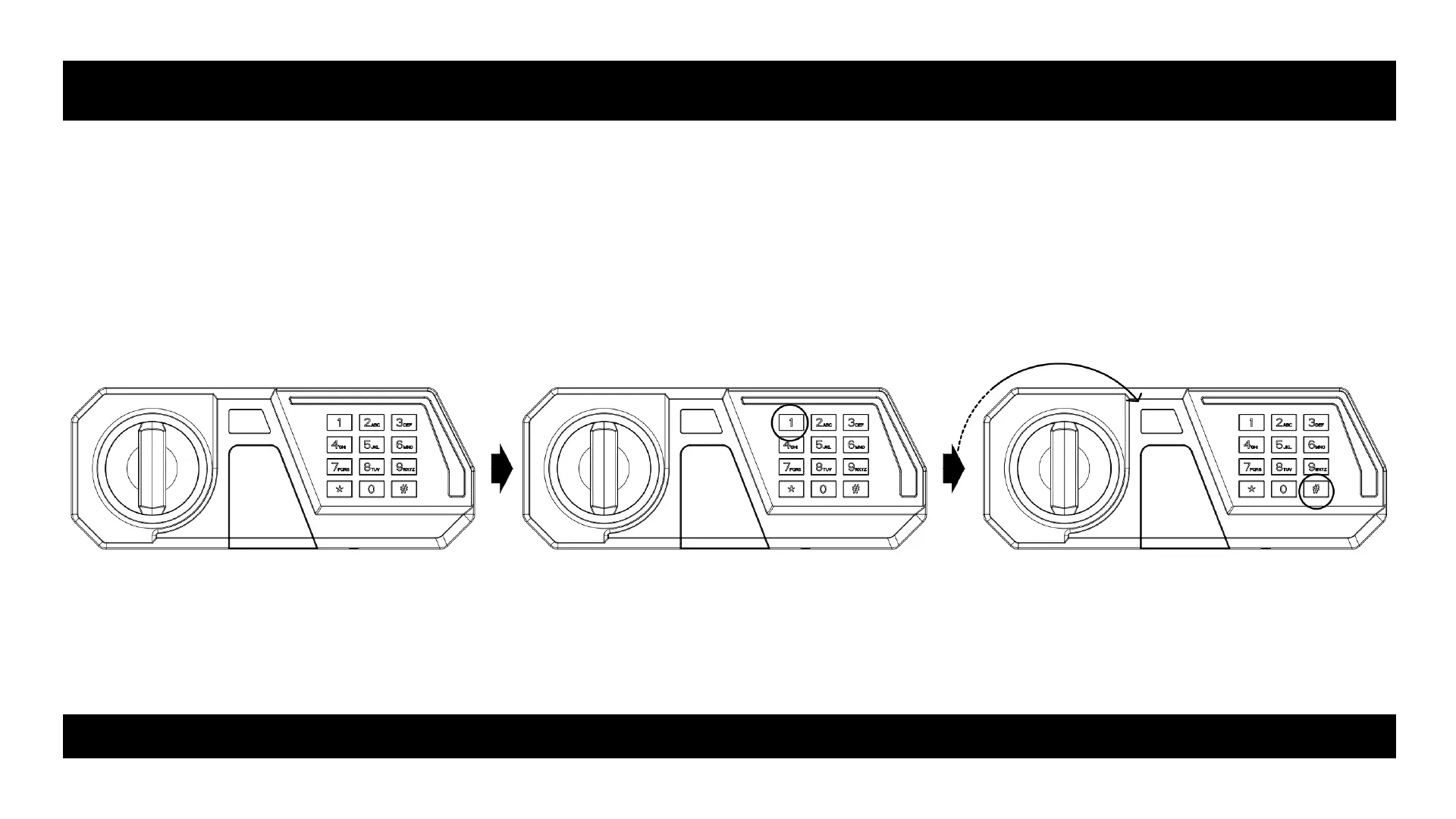 ● Input the code you set (3 to 8 digits), each pressing results one buzzer beep and yellow light flashes.