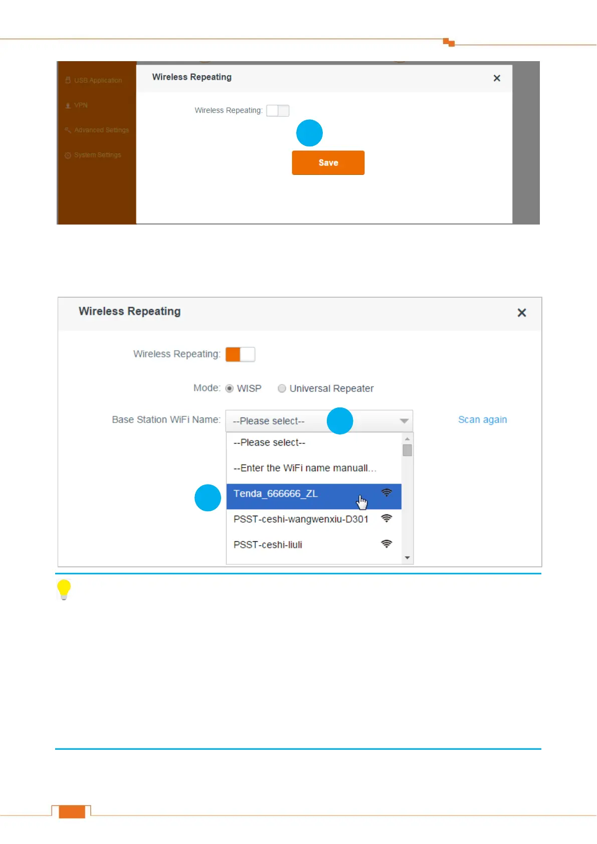 Router B MUST contain the Router A’s channel, or the Router A’s WiFi name (wireless network name)