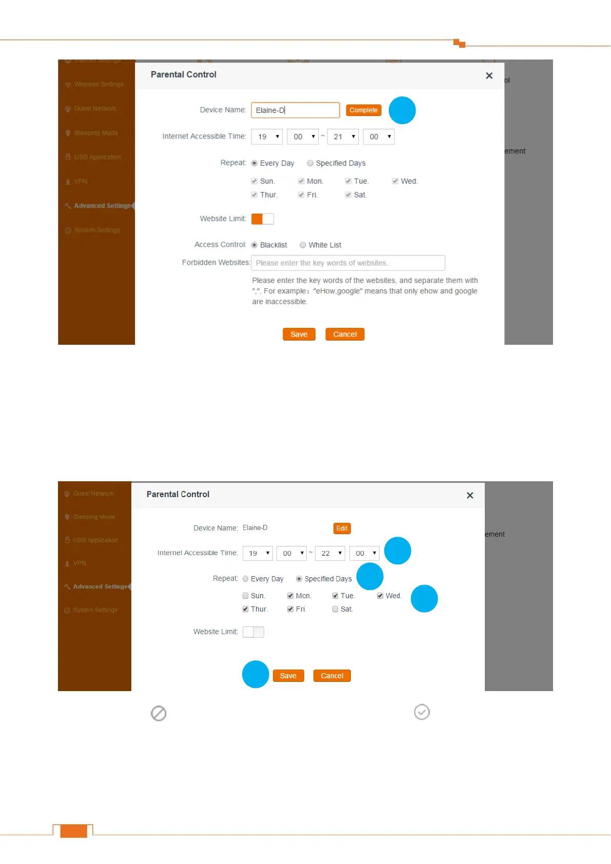 Select the time you allow your teenager to access the Internet, for example: 07:00pm~10:00pm.