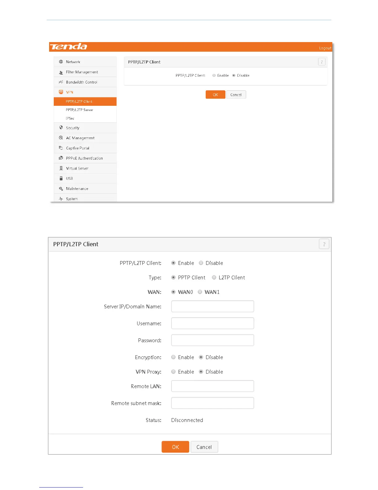 Click VPN to go to the PPTP/L2TP Client configuration page.