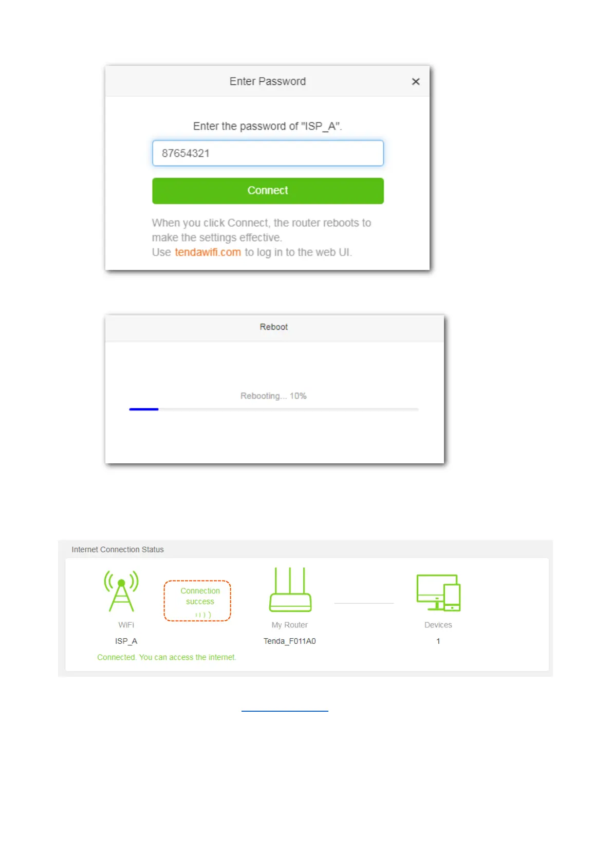 name tendawifi.com. Choose Status > Internet Connection Status to check the connection status.