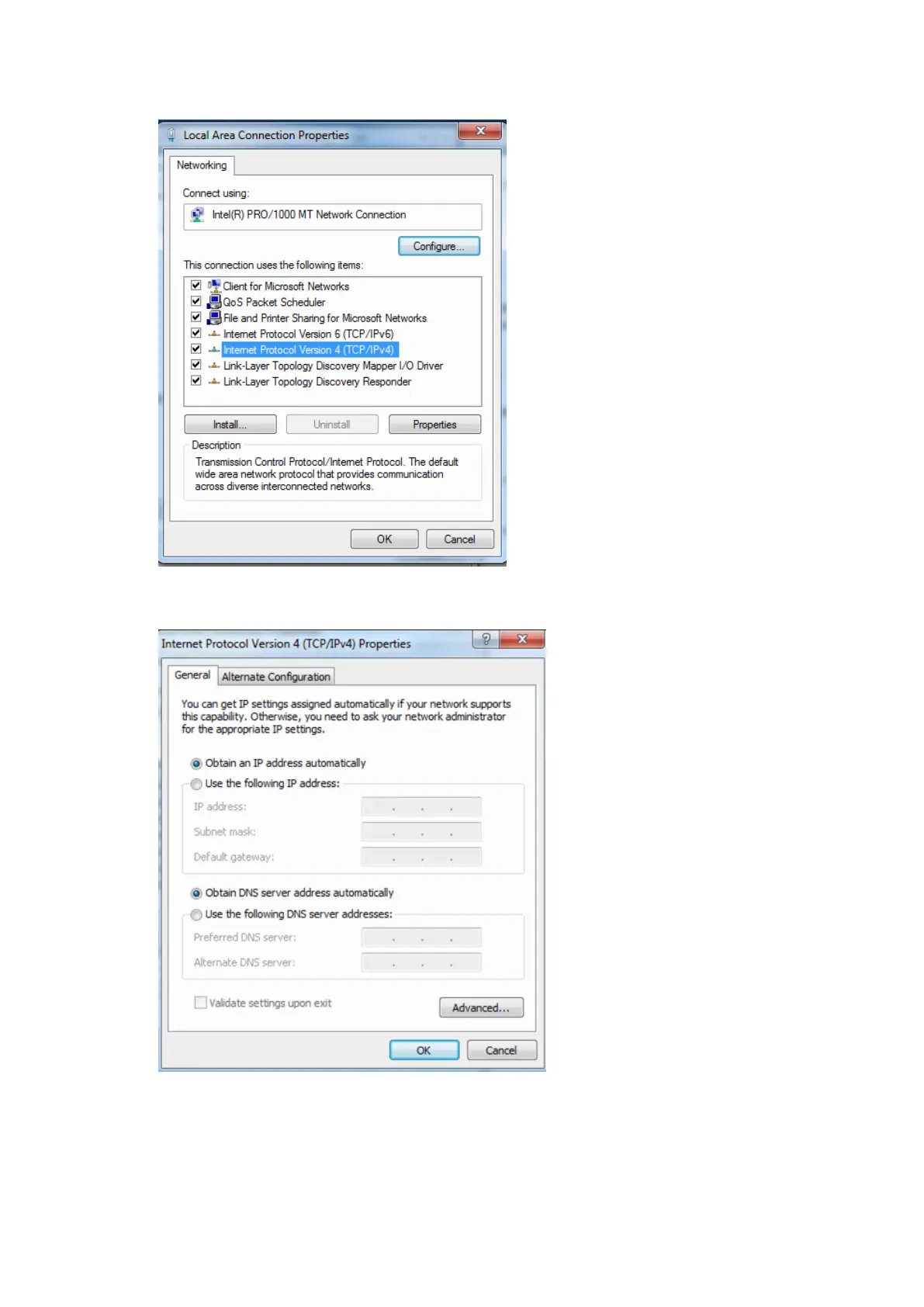 Step 4 Select Obtain an IP address automatically and Obtain DNS server address automatically,