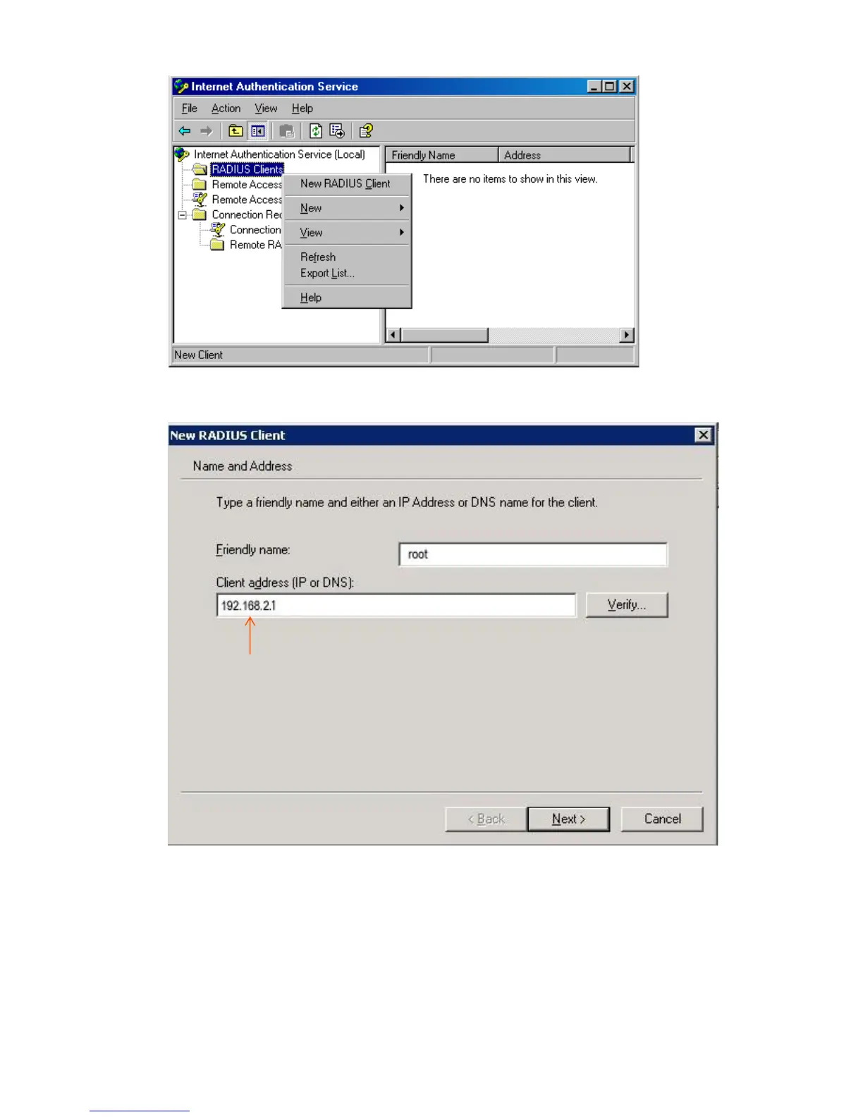 2. Enter a RADIUS client name (which can be the name of the AP) and the IP address of the CPE, and click