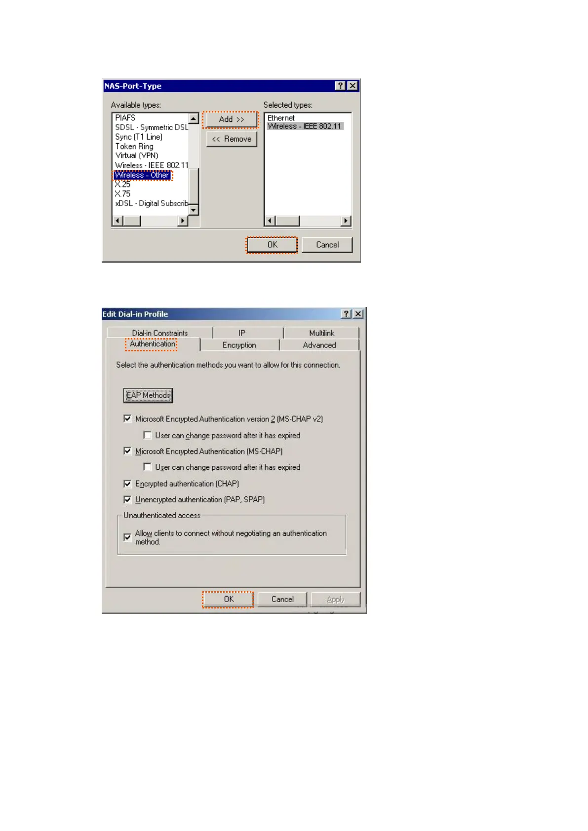 11. Click Edit Profile, click the Authentication tab, configure settings as shown in the following