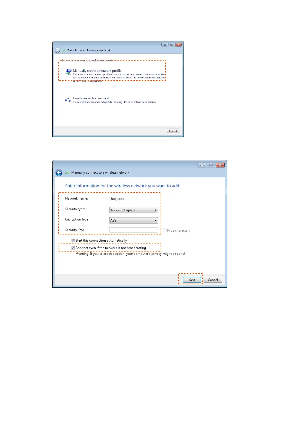 Step 3 Click Manually create a network profile.