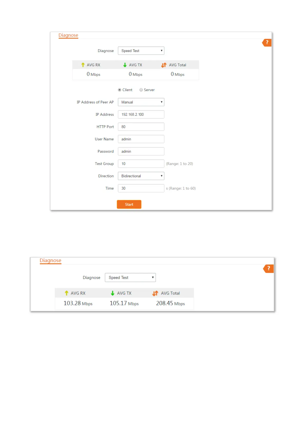 The test result will be displayed in a few seconds in the list below the Diagnose box. See the