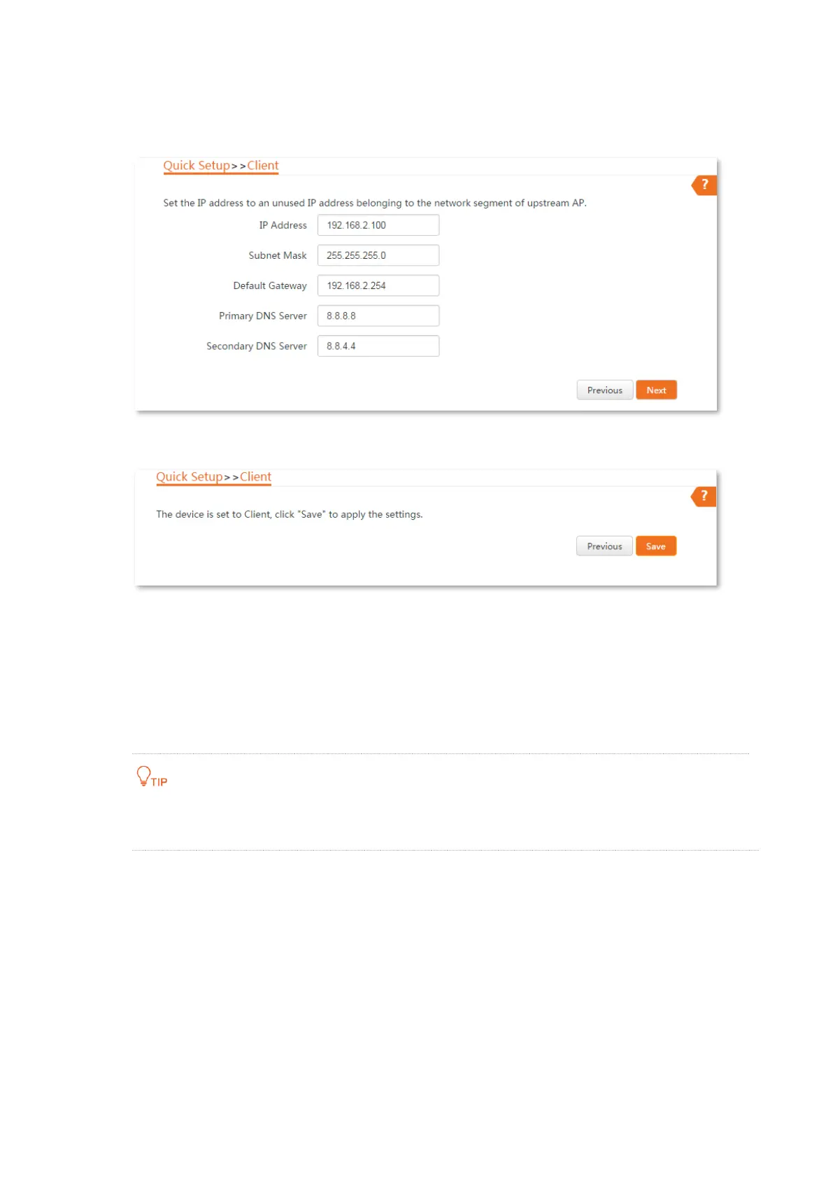 address to 192.168.2.X (X ranges from 2 to 254). Then click Next.