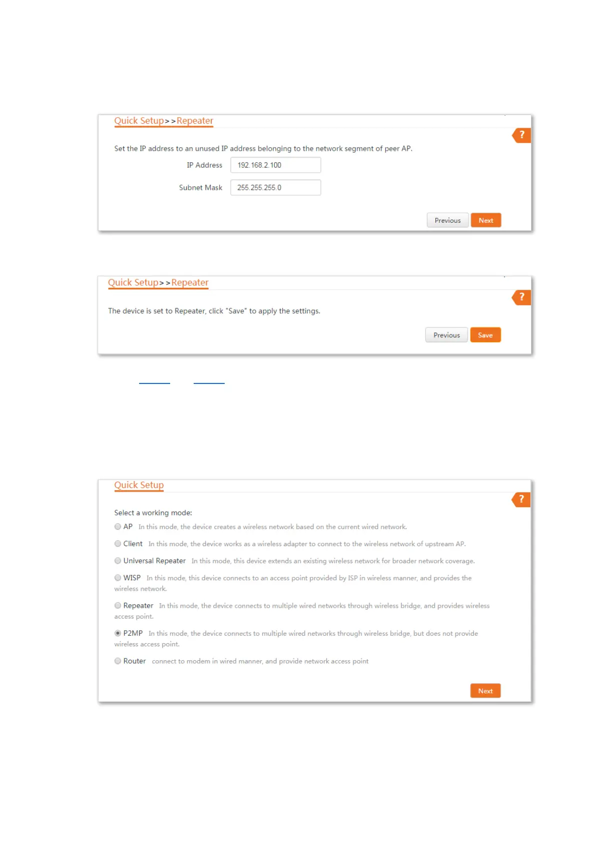 Tenda_2 in this example, set it to Repeater mode, and bridge to CPE1.