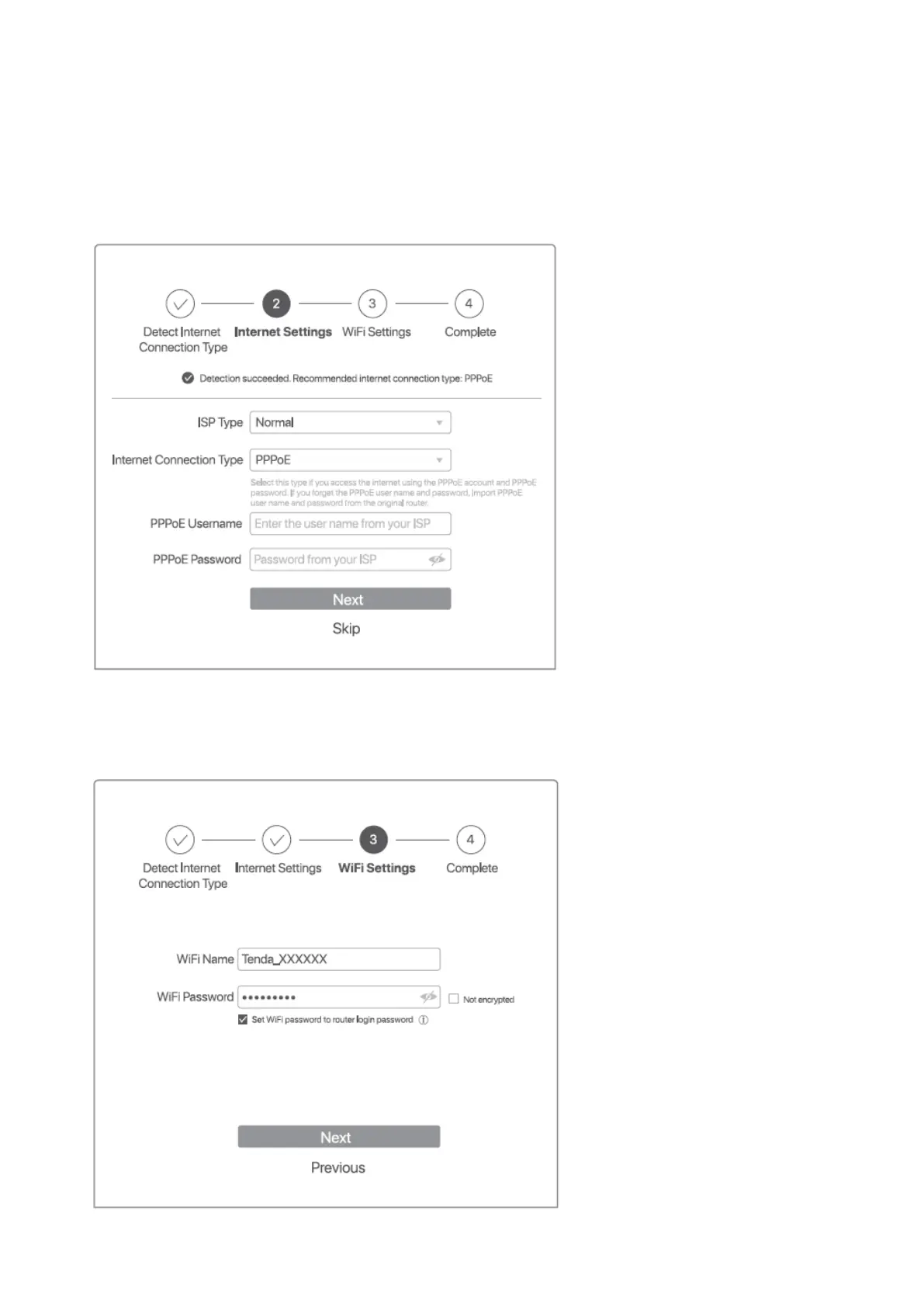 operations as prompted, or you can obtain the PPPoE user name and password from your ISP and