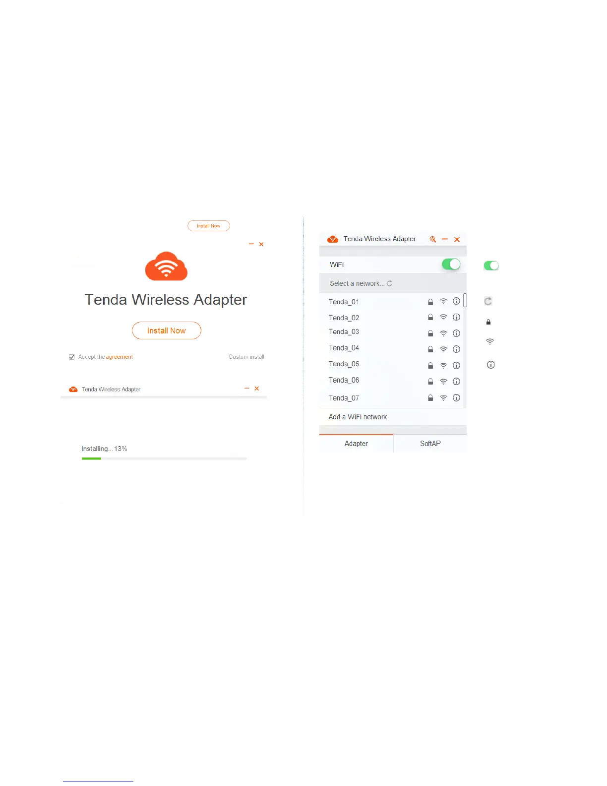 After installation completes, the wireless USB adapter program runs automatically.