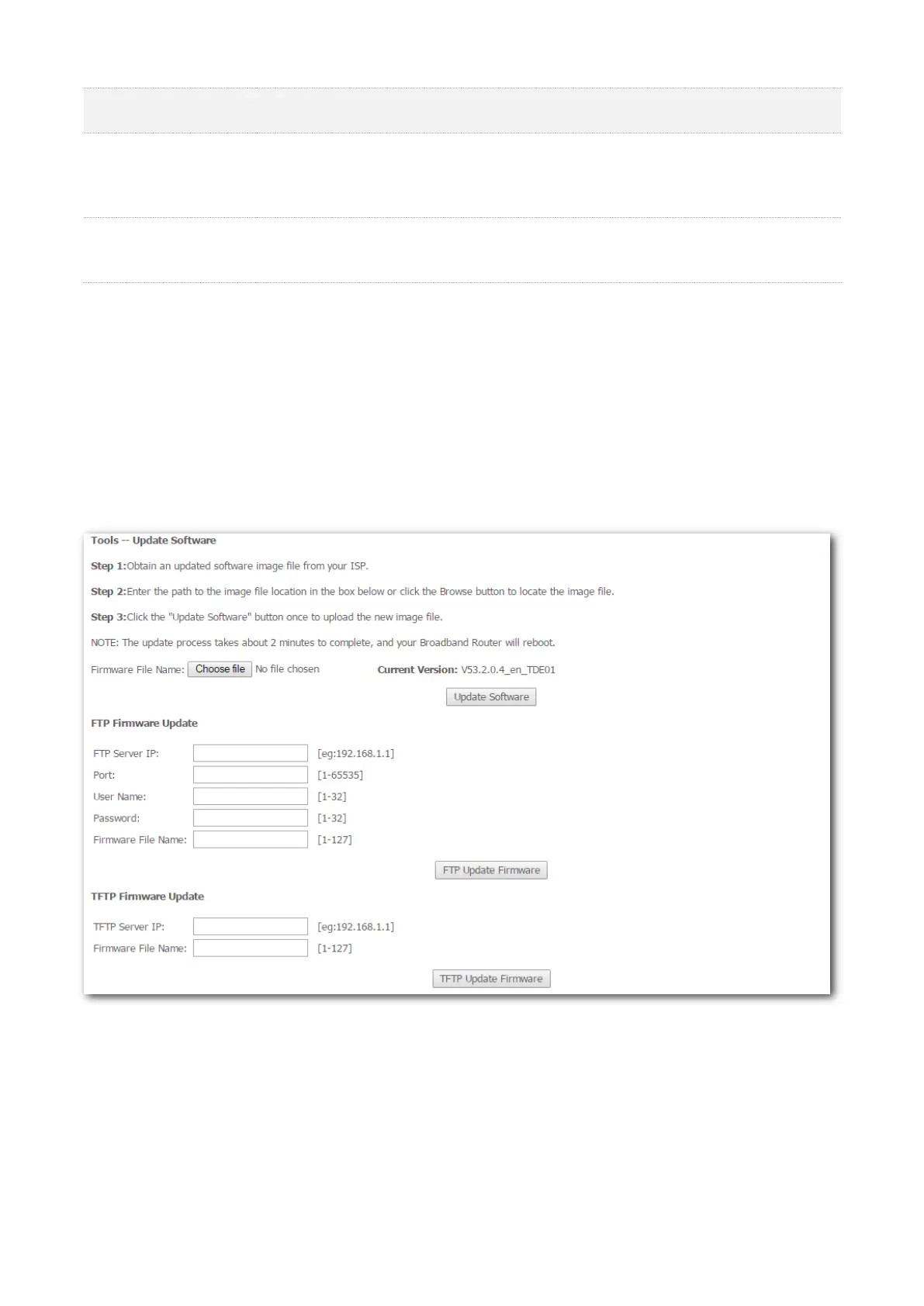 This function allows you to upgrade the firmware of the device locally, using FTP, or using TFTP for