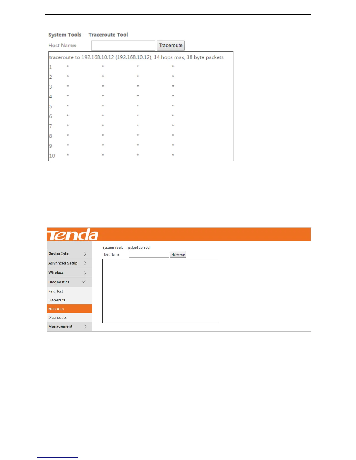 Choose Advanced > Diagnostics > Nslookup to enter this page.