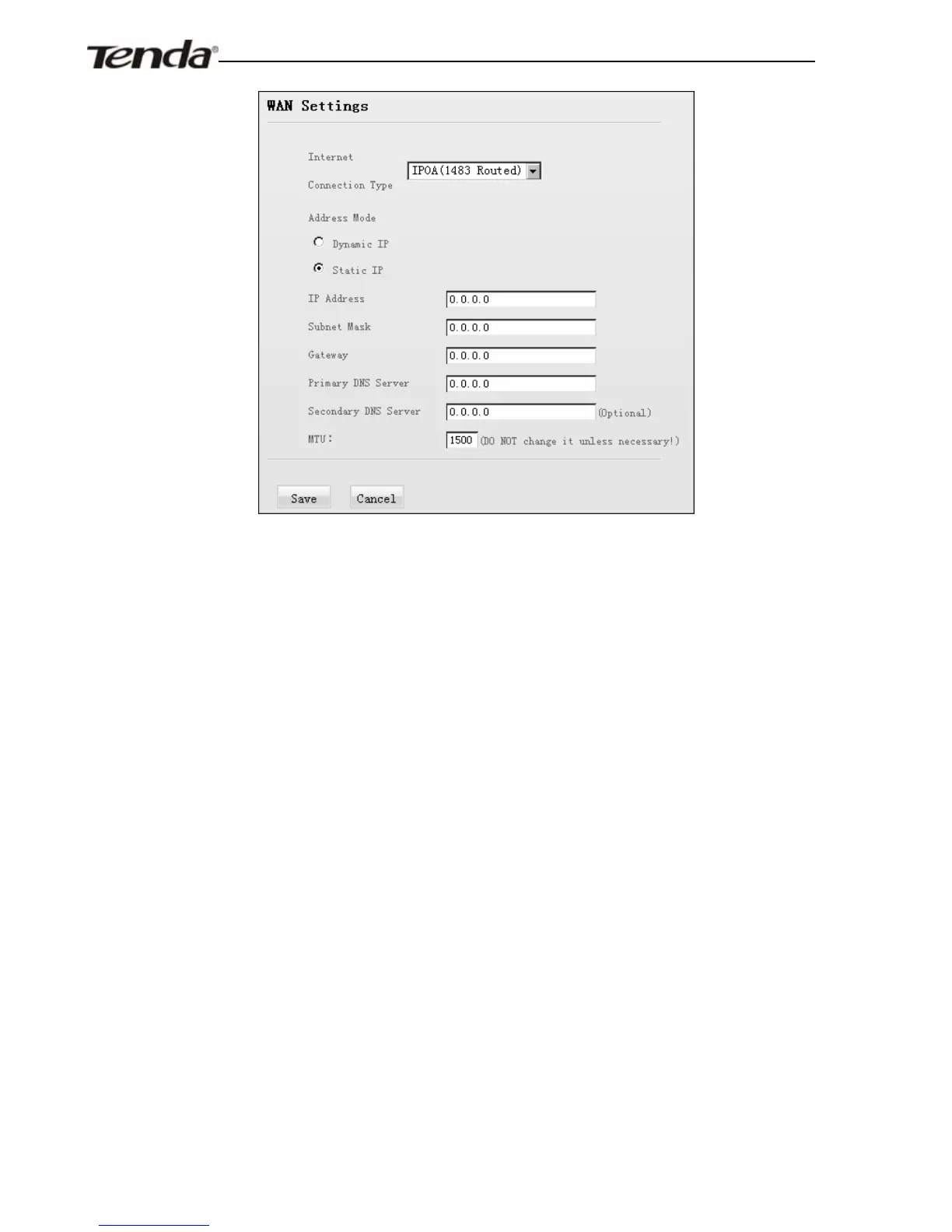 Gateway: Enter the WAN Gateway provided by your ISP.