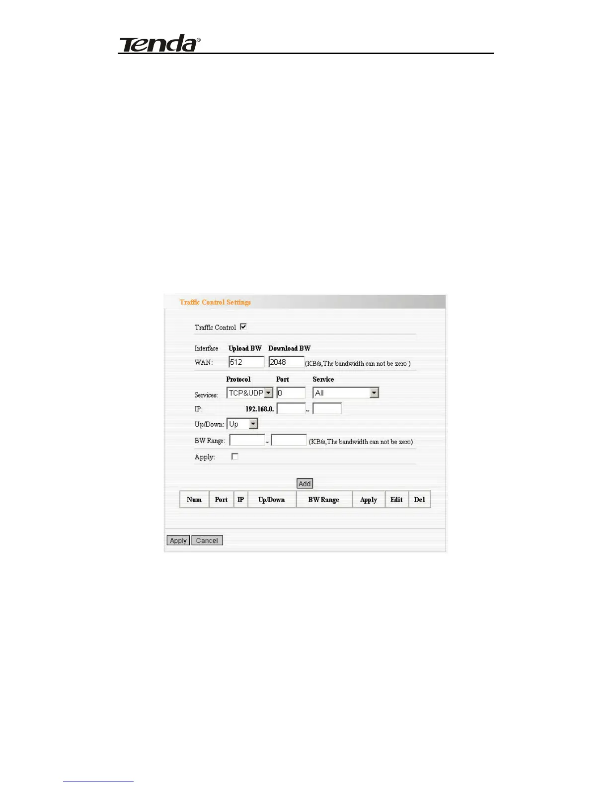 ¾ Enable Traffic Control: To enable or disable the